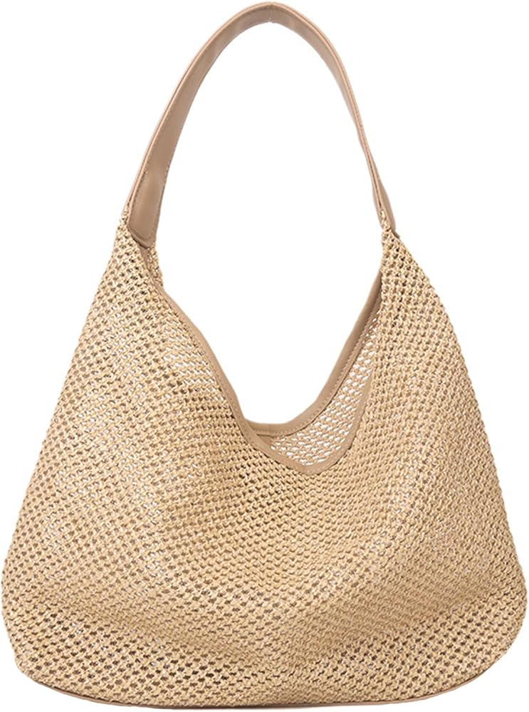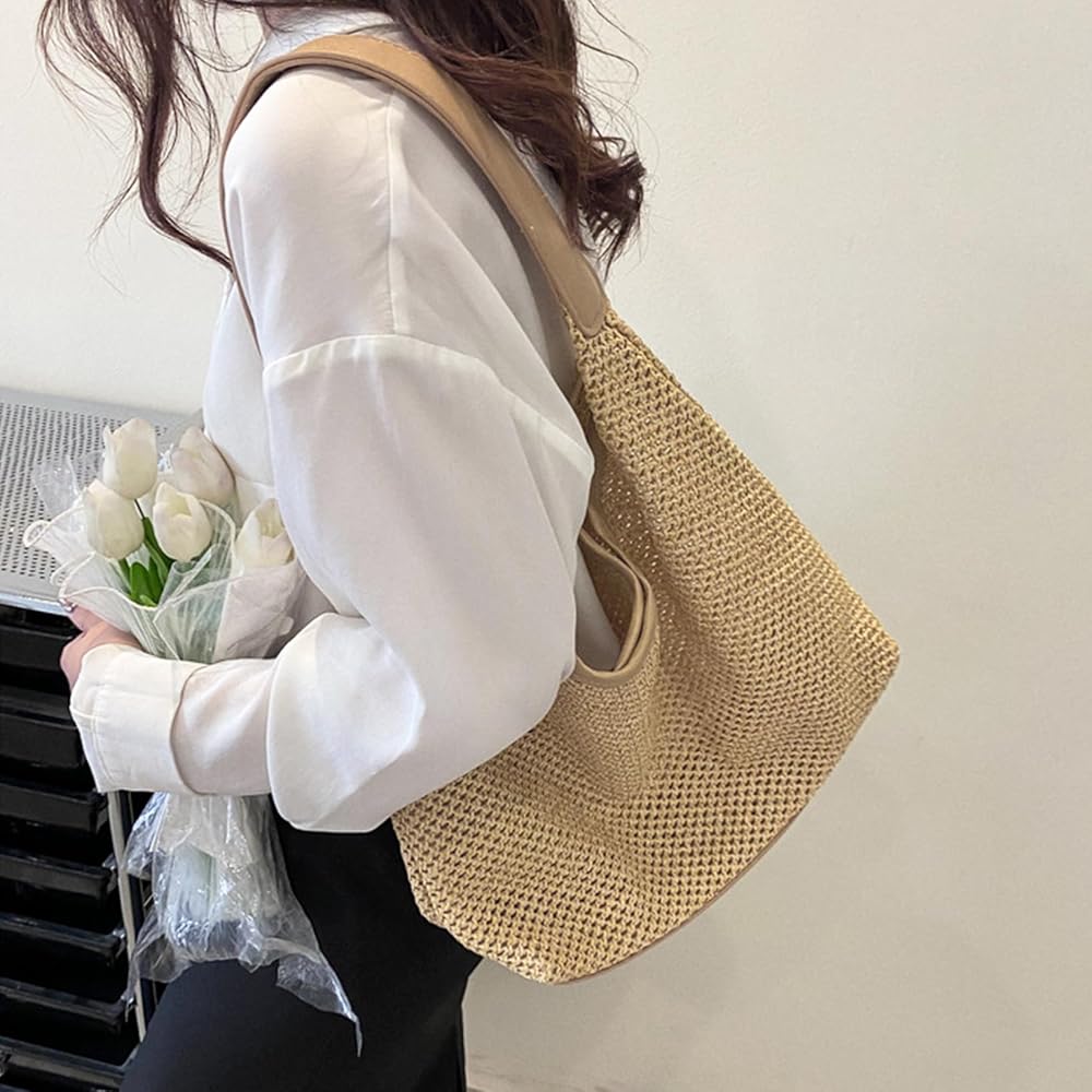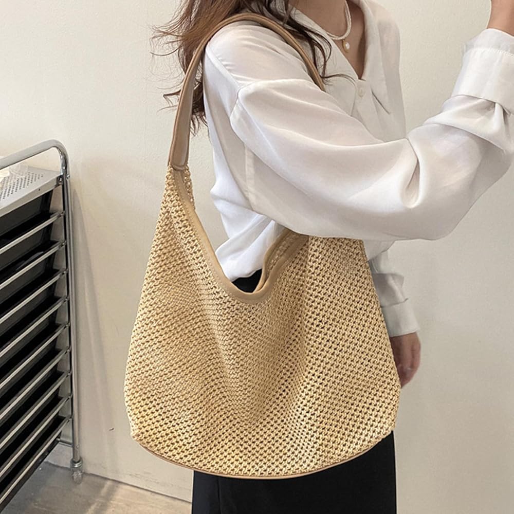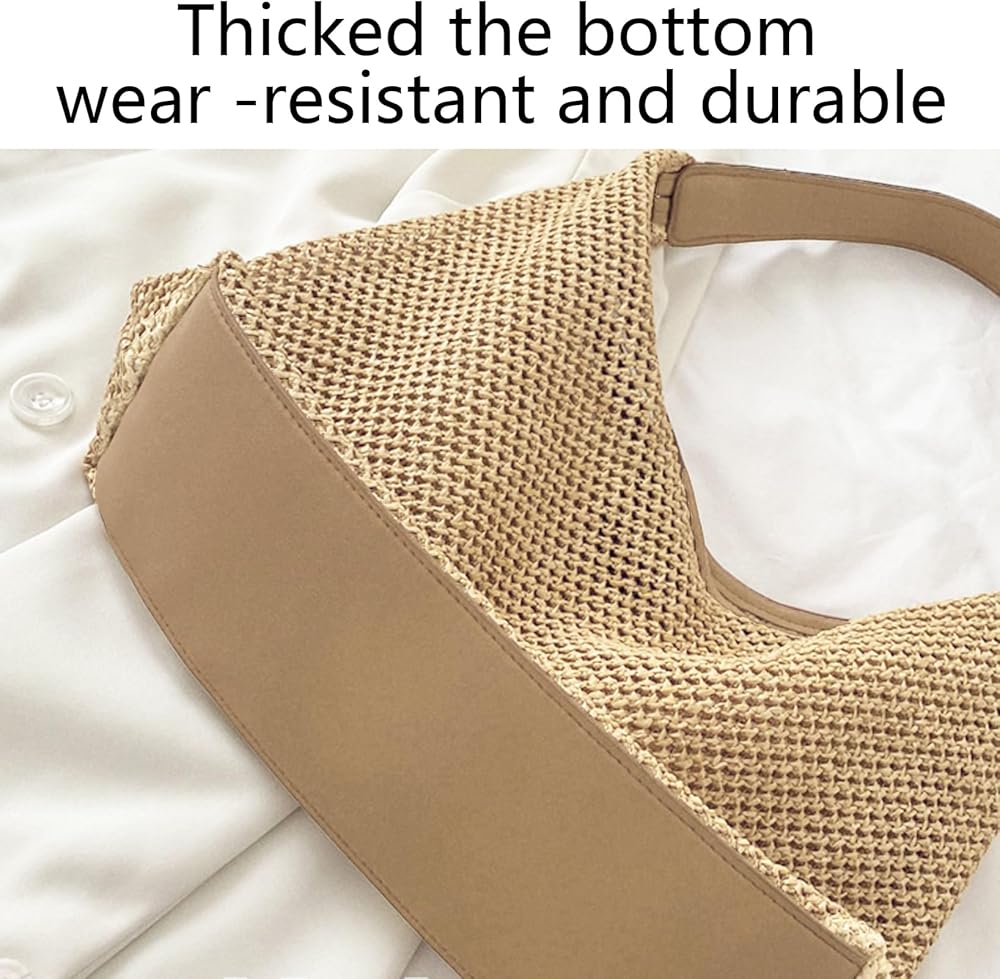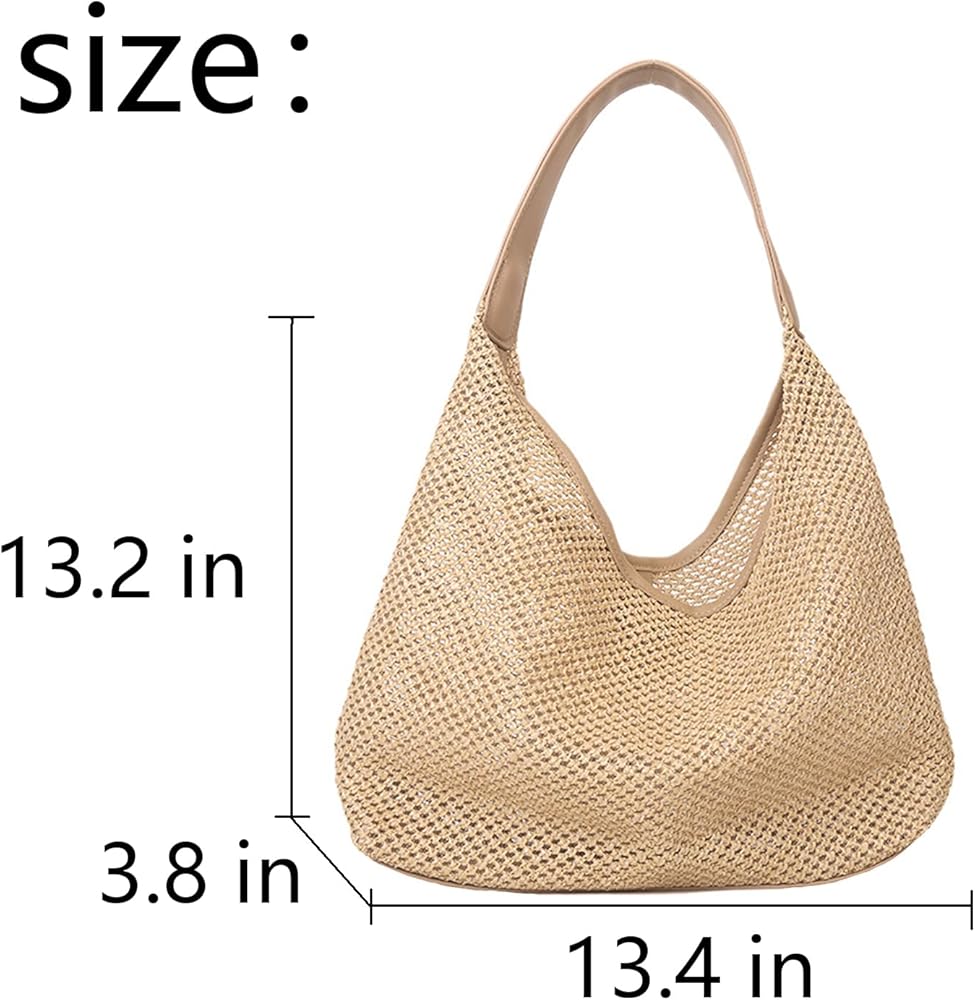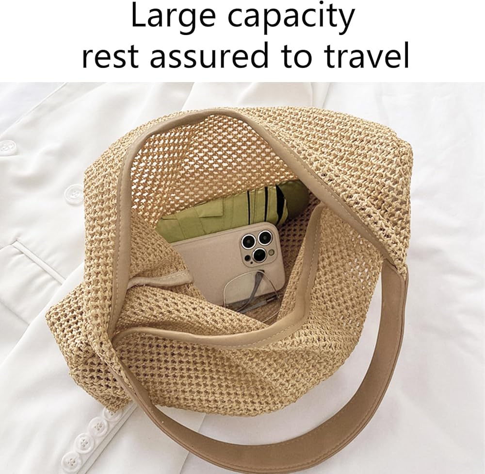 حجم كبير: محفظة صيفية 13.4 × 3.8 × 13.2 بوصة، محافظ صيفية للنساء 2025 حزام كتف قوي يجعل حقيبة الشاطئ ذات القش متينة وناعمة في الحمل.