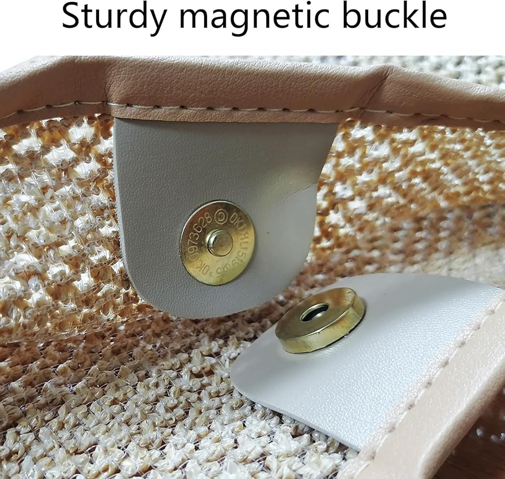 تصميم عصري: حقيبة منسوجة غير مبطنة، إغلاق مغناطيسي علوي، حزام كتف قوي يجعل حقيبة الشاطئ ذات المصاصة متينة وناعمة للحمل. حقيبة منسوجة بها مساحة كافية للضروريات اليومية.