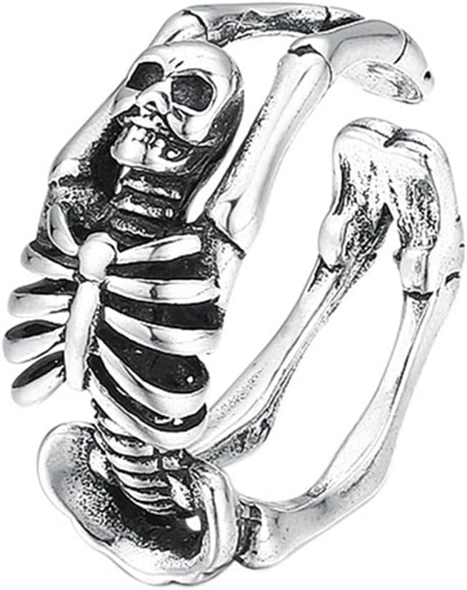 Style: Men's Human Skull S925 sterling silver ring with a unique and bold design featuring a human skull, perfect for fans of gothic, punk rock or motorbike culture.