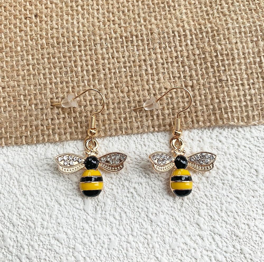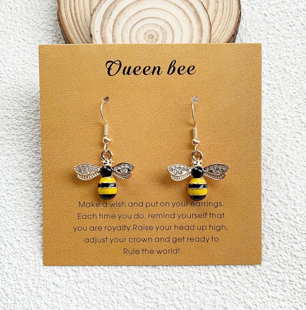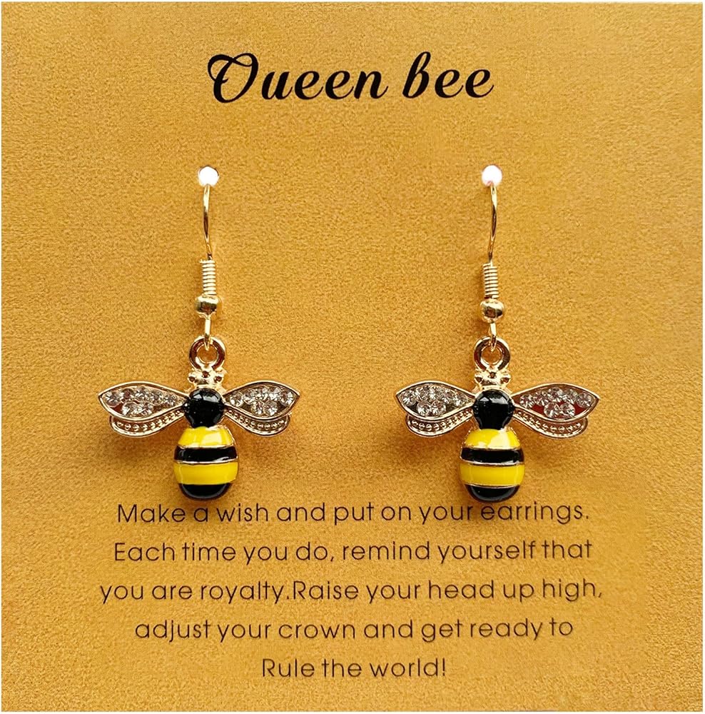 تصميم خاص: أقراط ملكة النحل - لطيفة وعصرية، الطول الإجمالي للقرط المتدلي حوالي 1.37 بوصة، المجوهرات الرائعة تحمل طاقة قوية