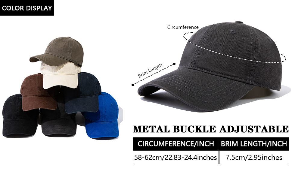 قبعات الرأس الكبيرة: قبعة البيسبول هذه مصنوعة خصيصًا للأشخاص ذوي الرؤوس الكبيرة. الحجم كبير فقط، ولا يشتريه الأشخاص ذوو الرؤوس الكبيرة. مقاس محيط الرأس الأنسب هو 58-62 سم/22.8-24.40 بوصة؛ طول الحافة/الفاتورة: 2.95 بوصة (7.5 سم). عمق القبعة: 5.31 بوصة (13.5 سم). يمكنك ضبط حجم القبعة بواسطة مشبك الحزام المعدني لجعل قبعة البيسبول تناسب رأسك بشكل مريح وآمن.