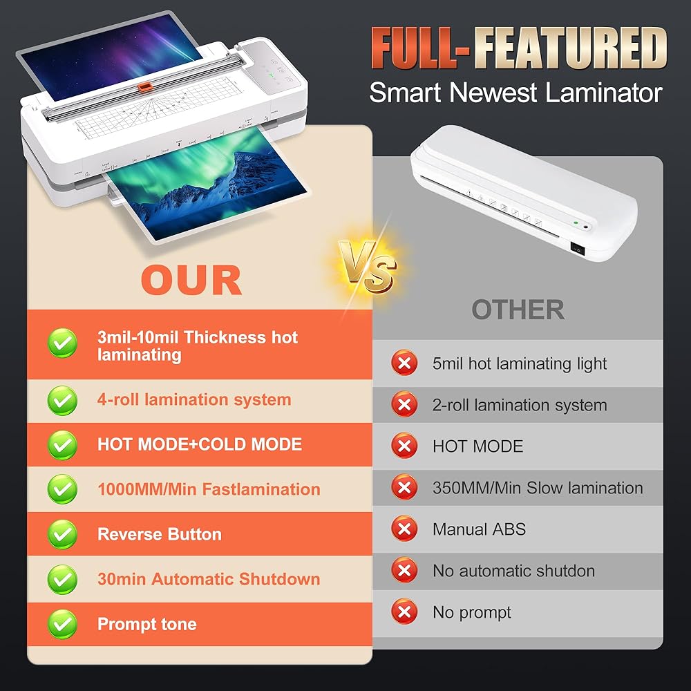 • 【𝐇𝐢𝐠𝐡-𝐄𝐟𝐟𝐢𝐜𝐢𝐞𝐧𝐜𝐲 𝐏𝐞𝐫𝐟𝐨𝐫𝐦𝐚𝐧𝐜𝐞 𝐰𝐢𝐭𝐡 𝟓𝟓-𝐒𝐞𝐜𝐨𝐧𝐝 𝐅𝐚𝐬𝐭 𝐖𝐚𝐫𝐦-𝐔𝐩】قم بزيادة الإنتاجية إلى أقصى حد باستخدام آلة التغليف الحراري هذه. ويتميز بالإحماء السريع لمدة 55 ثانية ويحقق سرعة ملحوظة تبلغ 1000 ملم في الدقيقة. يمكّنها هذا الأداء القوي من تصفيح ورقة واحدة بحجم 3 مل مقاس A4 في حوالي 17 ثانية فقط. مثالية للتعامل بكفاءة مع الدفعات الكبيرة في المكاتب والفصول الدراسية المزدحمة، توفر آلة التغليف هذه سرعة استثنائية وجودة ثابتة.