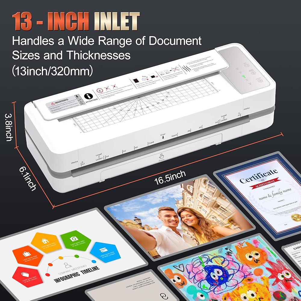 • 【𝐔𝐧𝐦𝐚𝐭𝐜𝐡𝐞𝐝 𝟑-𝟏𝟎 𝐌𝐢𝐥 𝐓𝐡𝐢𝐜𝐤𝐧𝐞𝐬𝐬 & ماكينة تغليف متعددة الاستخدامات تتعامل مع أي مشروع بسهولة. وهو يدعم النطاق الكامل لسمك الحقيبة من 3 إلى 10 مل، مما يسمح لك بتصفيح الصور الدقيقة والهويات القوية وأغطية القائمة المتينة. يستوعب المدخل الواسع مقاس 13 بوصة الموجود في ماكينة التغليف هذه كل شيء بدءًا من البطاقات الصغيرة وحتى الملصقات الكبيرة مقاس A3 أو 11 × 17 بوصة، مما يجعلها حلاً شاملاً للمكاتب والمدارس والاستوديوهات.
