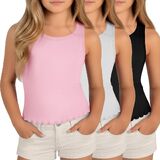 Girls lettuce trim tank top are suitables for girls aged 5-14 years old, machine or hand washable for easy care, we recommend that you refer to the size data to choose the suitable one