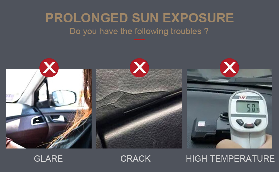 • ☀آمن - إن انعكاس أشعة الشمس والضوء من حركة المرور المعاكسة من لوحة القيادة الخاصة بك على الزجاج الأمامي، يجعل من السهل سقوط القيادة ضحية لحوادث المرور. سوف يقلل غطاء Dash الخاص بنا من هذا الانعكاس إلى الحد الأقصى، ويحمي سلامة قيادتك.