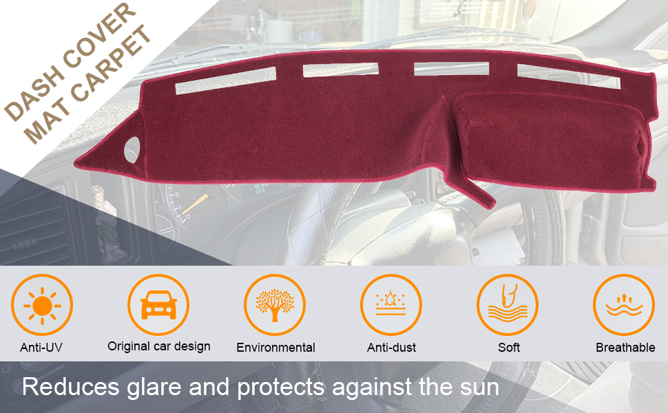 • ☀ تصميم مخصص - غطاء لوحة عدادات السجاد مقاس بالليزر يناسب شاحنتك. لن يتم تغطية فتحات مكيف الهواء وأجهزة الاستشعار الخاصة بك. غطاء لوحة القيادة الخاص بنا مناسب للقيادة باليد اليسرى؛