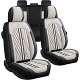 تصميم خاص: يختلف عن أغطية المقاعد الأخرى، يتضمن هذا المنتج أحدث تصميم: مسند الرأس وجانب المقعد مغطى بالكامل بزاوية 360 درجة، ولا يوجد ضمادة مرئية. قم بتحسين مظهر سيارتك على الفور باستخدام هذه الأغطية.