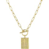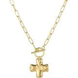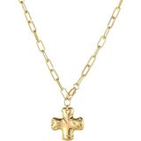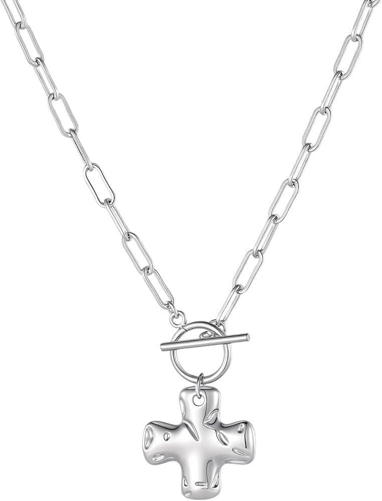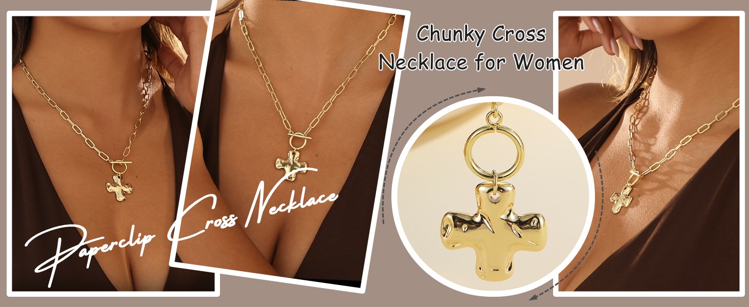قلادة متقاطعة خالدة بتفاصيل عصرية - قلادة متقاطعة ذهبية مصممة بشكل جميل للنساء وتتميز بلمسة نهائية مطروقة بلطف تلتقط الضوء من كل زاوية. تضيف سلسلة وصلات مشبك الورق الأنيقة تحديثًا عصريًا لرمز الصليب الديني ذي المعنى.