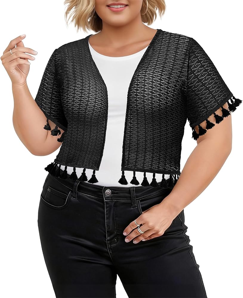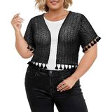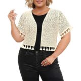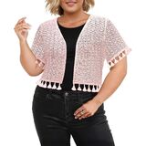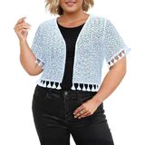 Lastshe المرأة حجم كبير تجاهلات الدانتيل قصيرة الأكمام قطع نمط بوليرو شير أعلى شرابة مع سترة نمط القمح in Kuwait