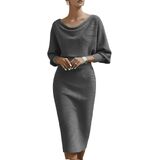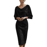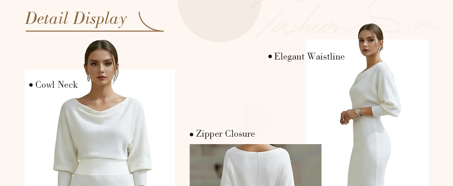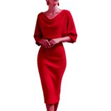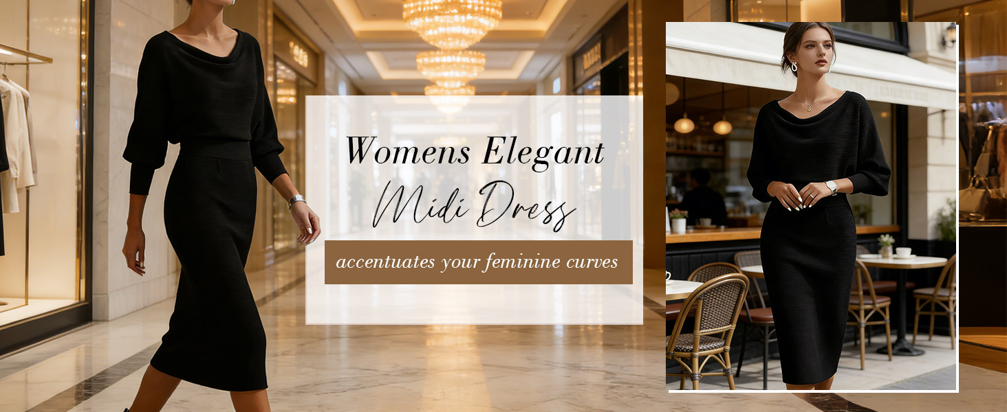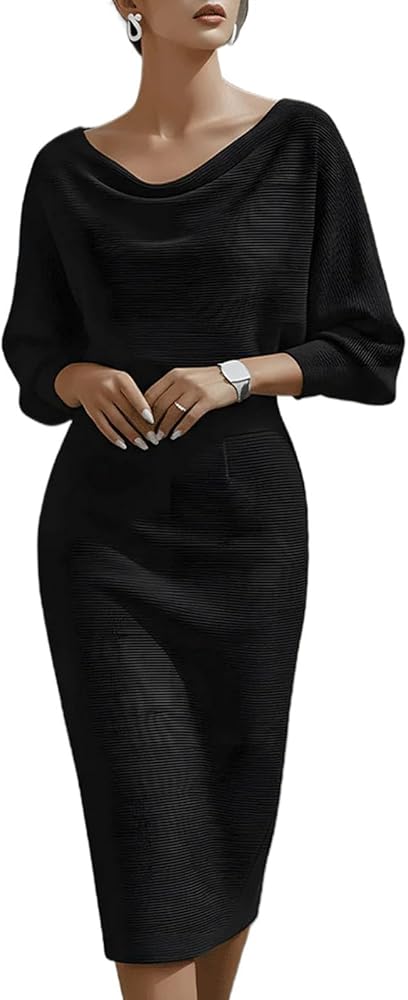 تصميم جذاب: يتميز بخط رقبة على شكل قلنسوة يتدلى بلطف على الأكتاف، وأكمام فضفاضة على شكل جناح الخفاش لملاءمة مريحة للذراع، وتنورة قلم رصاص مدمجة بسلاسة. تتدفق الصورة الظلية بشكل جميل من النصف العلوي المتجدد الهواء إلى النصف السفلي المصمم خصيصًا ليعانق الجسم، مما يخلق شكلاً متوازنًا وأنيقًا يبرز منحنياتك الأنثوية.