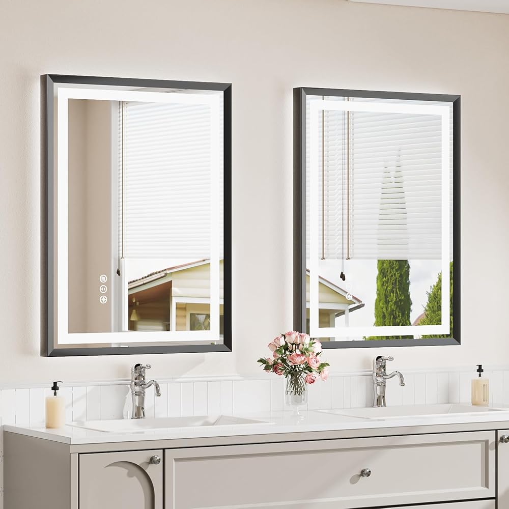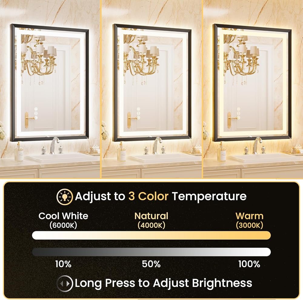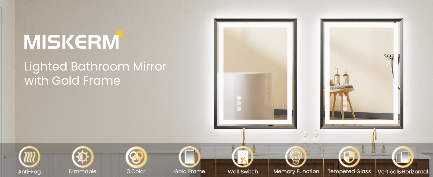 【مصادر إضاءة مزدوجة وإطار ألومنيوم حديث】: تحتوي مرآة الحمام Miskerm على إضاءة خلفية مدمجة وشرائط إضاءة LED مزدوجة الإضاءة الأمامية، وهي مشرقة للغاية ومريحة بالنسبة لك لوضع المكياج والعناية بالبشرة والحلاقة والعريس في الحمام. والإطار المصنوع من الألومنيوم غير اللامع يجعل المرآة أكثر حساسية. نحن نقدم أيضًا خيارات باللونين الأسود والذهبي لتتناسب تمامًا مع نمط حمامك.