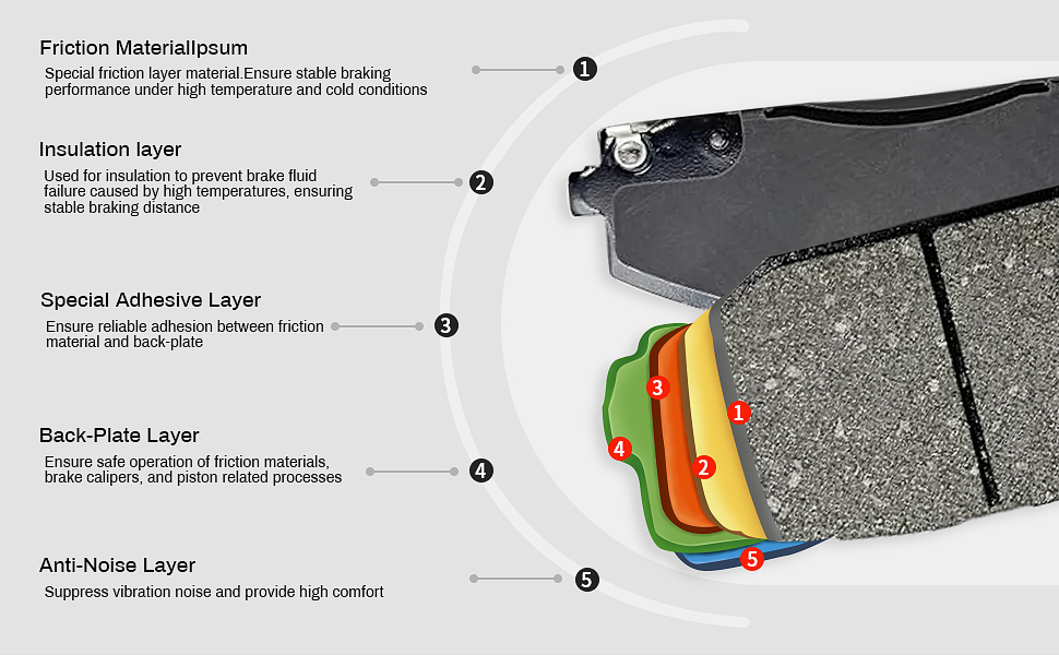تشغيل هادئ ومريح، ضوضاء منخفضة: تعمل مركبات السيراميك المتقدمة على تقليل الصرير والاهتزاز من أجل قيادة أكثر هدوءًا.