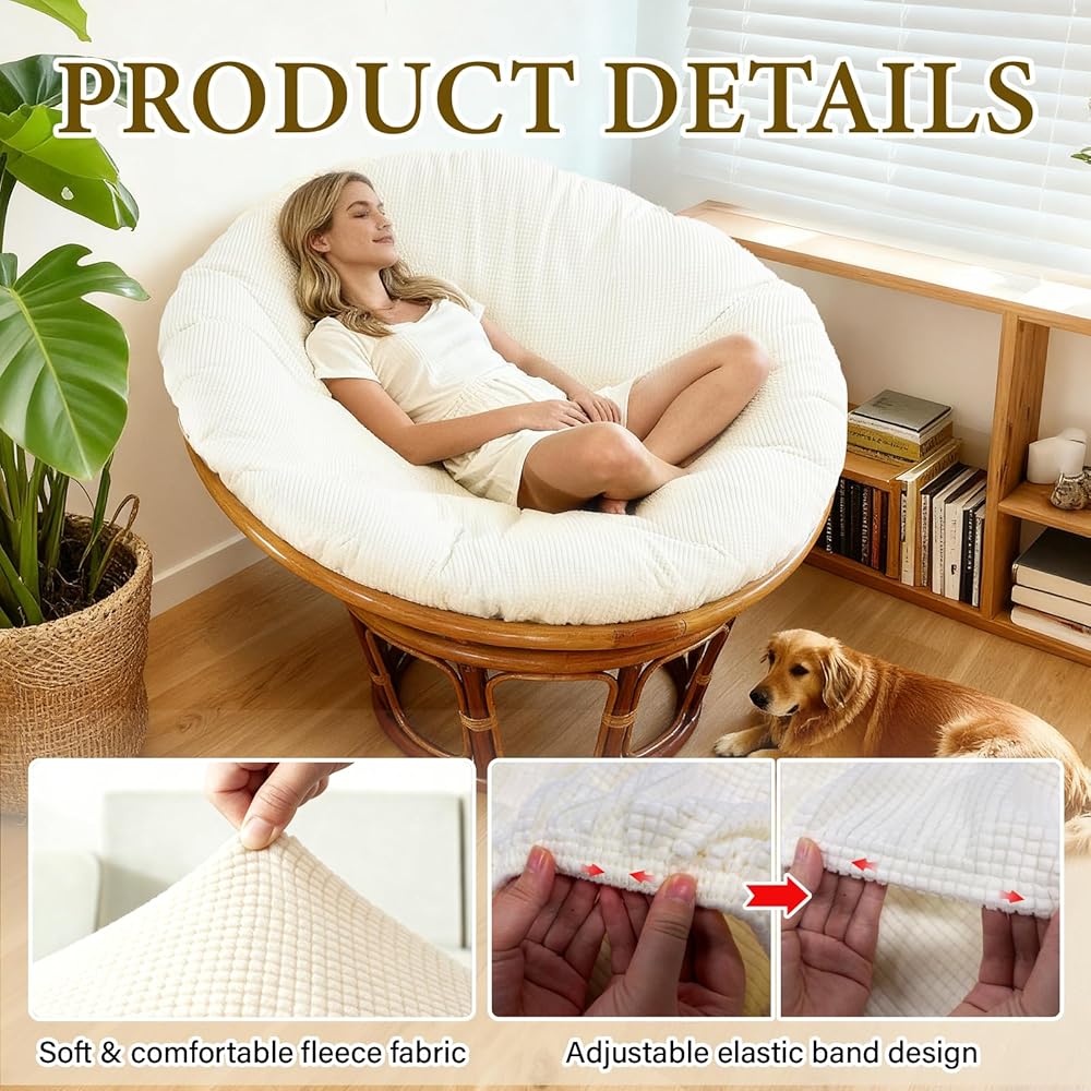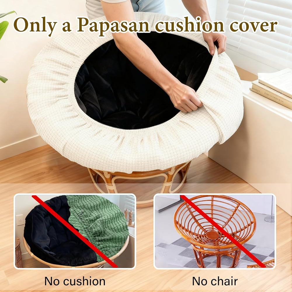 Comfortable Fabric : Our Papasan chair cushion cover is meticulously Crafted from fleece check fabric offer a soft and warm feel ensuring cosy comfort for sitting or reclining during colder months