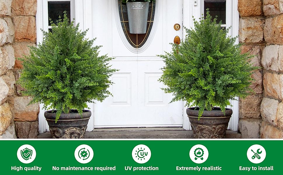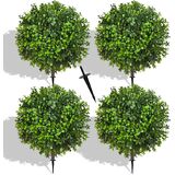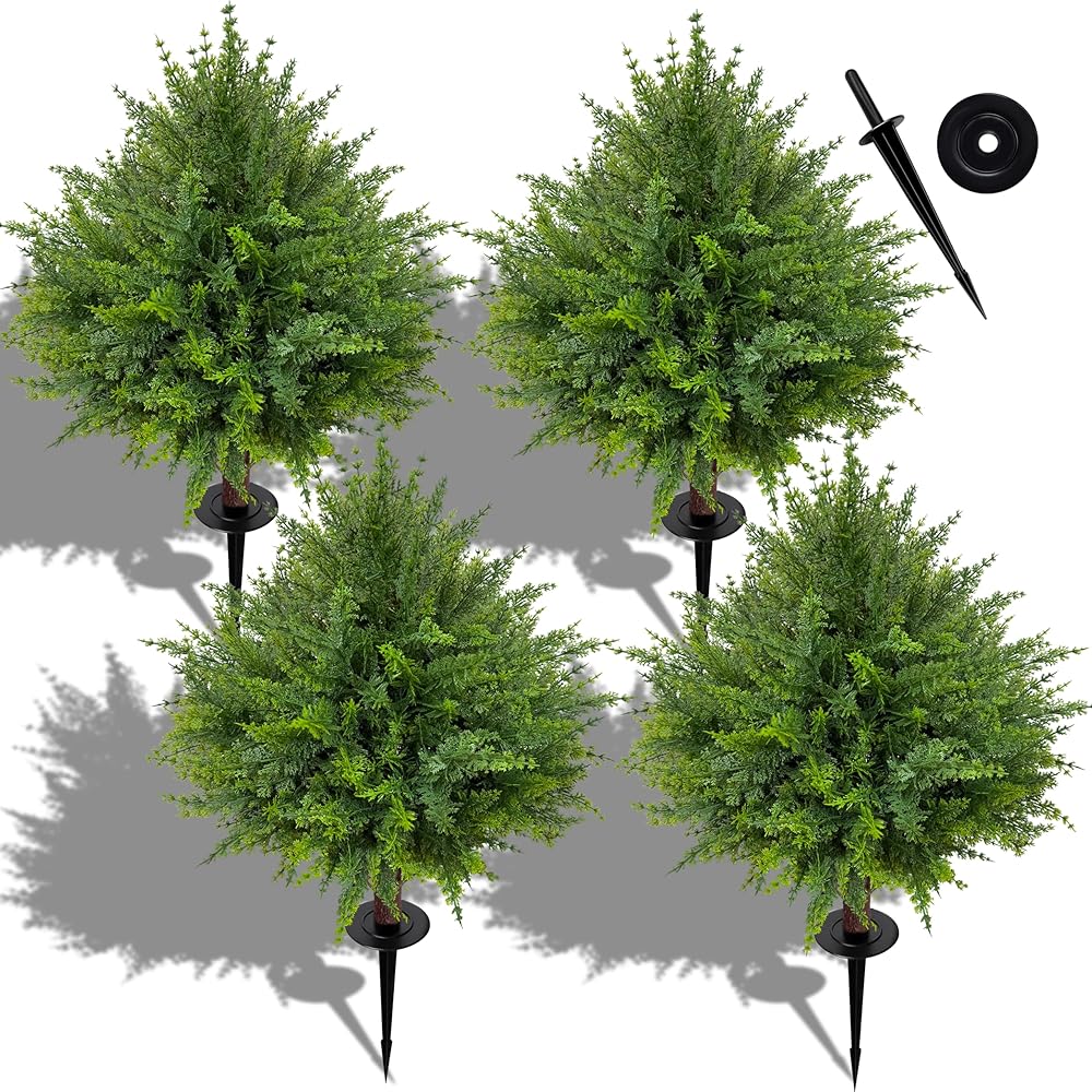 24.5 بوصة (ارتفاعًا) أشجار كروية من خشب الأرز الاصطناعي، مجموعة من 4 شجيرات شجيرة وهمية مقاومة للأشعة فوق البنفسجية مع مسامير أرضية، ونباتات صناعية خارجية للحديقة والفناء والشرفة الأمامية والديكور الداخلي (4)