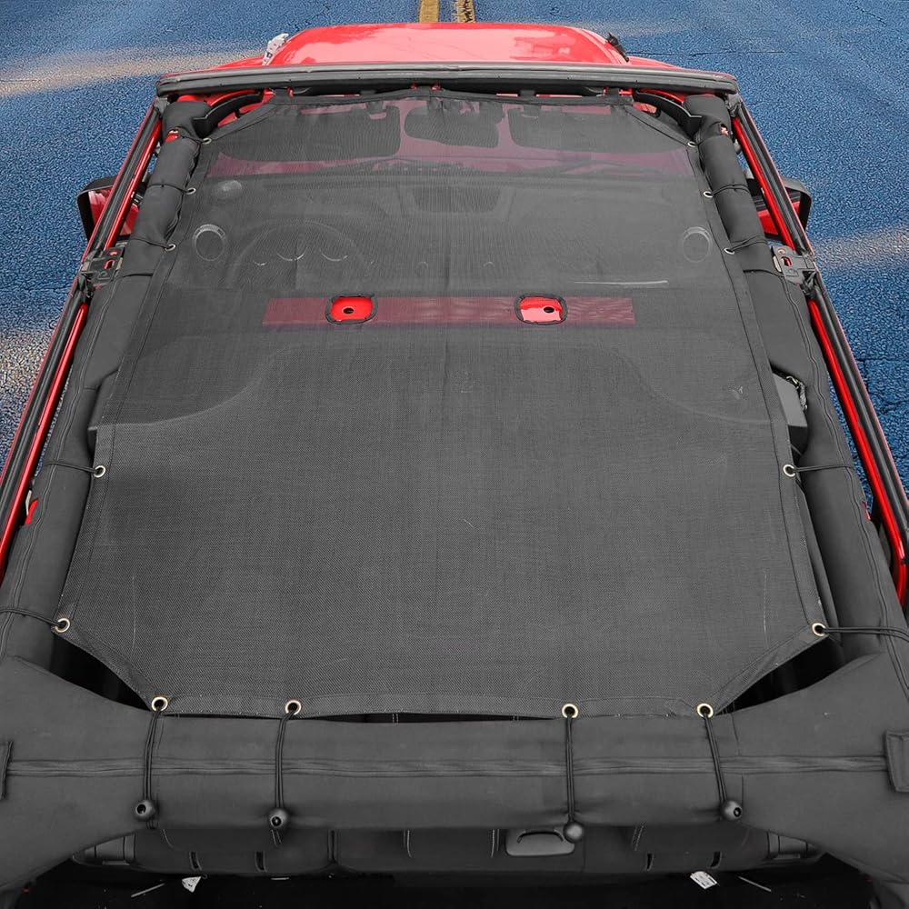 Jimen for JKU Sun Shade، مظلة علوية بيكيني شبكية لسيارة Jeep Wrangler JK Unlimited 2007-2018 4 أبواب فقط، أسود
