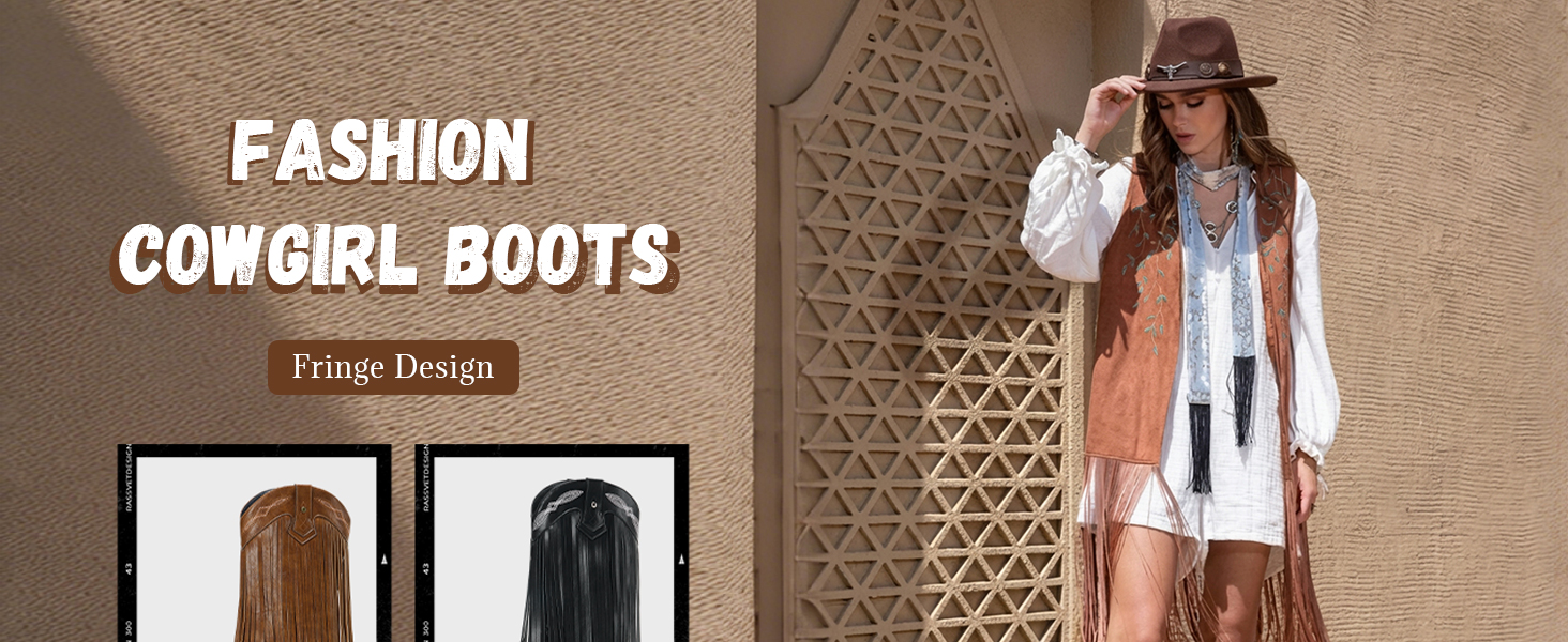 • 1. تفاصيل هامشية أنيقة: تتميز هذه الأحذية النسائية بشراشيب طويلة متدفقة لإضفاء طابع غربي جريء - مثالية لإضافة الحركة والذوق إلى ملابسك المستوحاة من بلدك