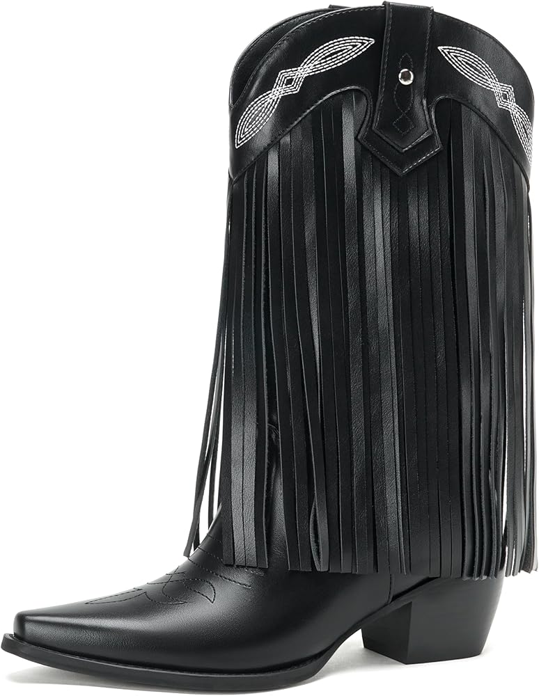 • 5. النمط الغربي متعدد الاستخدامات: ارتدي أحذية راعية البقر هذه ذات شراشيب متوسطة الساق مع الجينز أو التنانير أو الفساتين للحصول على مظهر غربي خالد. إضافة لا غنى عنها لأي أحذية راعية البقر مع مجموعة من الشراشيب