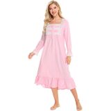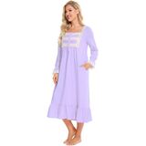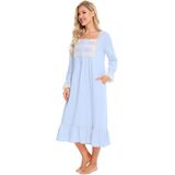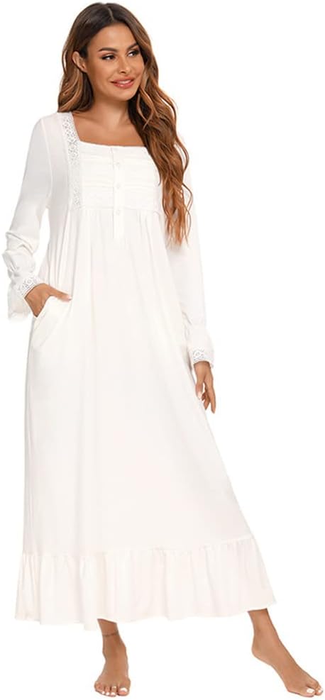 【Classic Long Nightgown】Elegant and Innocent design,beautiful court style and subtle ruffles Detailing,long sleeve sleepwear with lace details,Lightweight sleepshirt, casual loose fit loungedress that is great for women of all ages