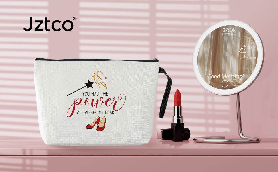 المواد: مادة بوليستر متينة وناعمة. حقيبة مكياج بسحاب مع اقتباس وطباعة جميلة على السطح.