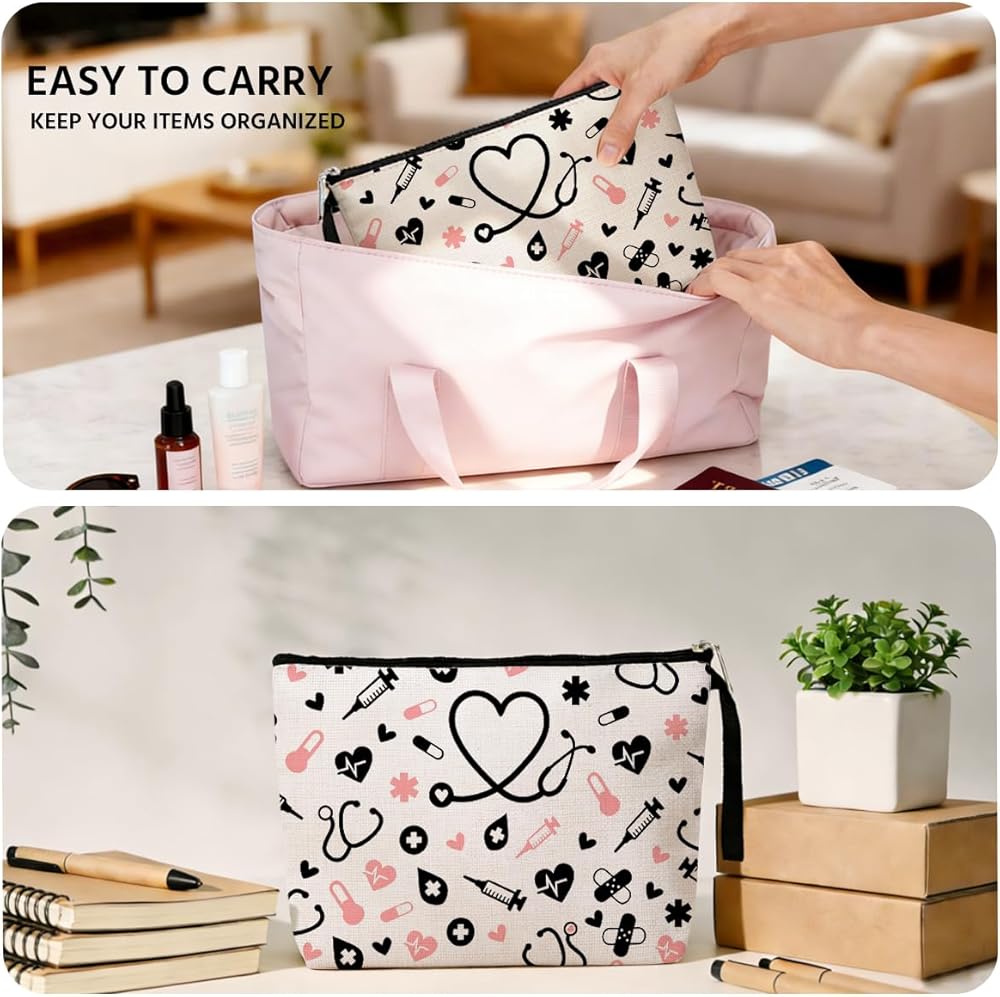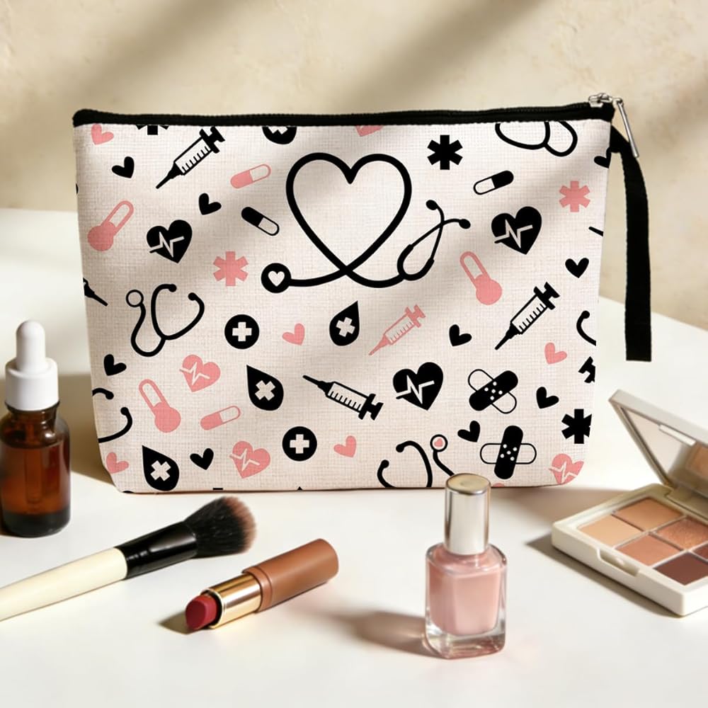 هدايا الممرضات، حقيبة مكياج، ملحقات الممرضات لأساسيات العمل، تقدير التمريض، هدايا أسبوع الممرضات للنساء، حقيبة أدوات الزينة RN، حقائب مستحضرات التجميل ليوم التخرج وأعياد الميلاد