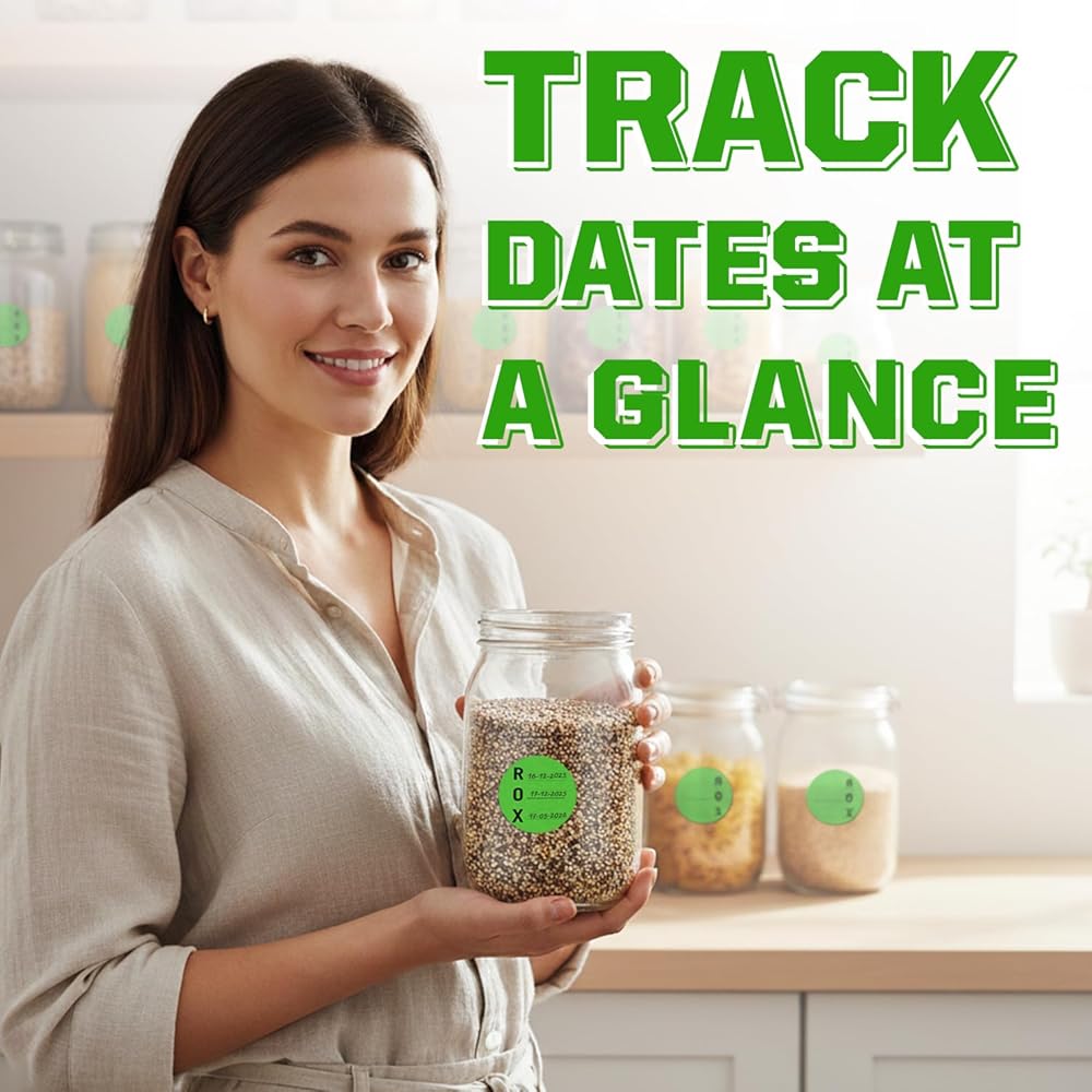 Each 1.5-inch round label provides clear space to mark received, opened, and expiration dates, making them ideal for food containers, bottles, mason jars, glass jars, and canning jars. With 1000 labels per roll, you get long-lasting value for both home and commercial use.