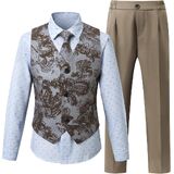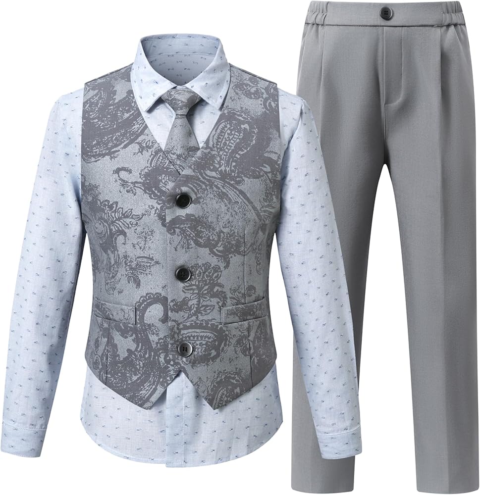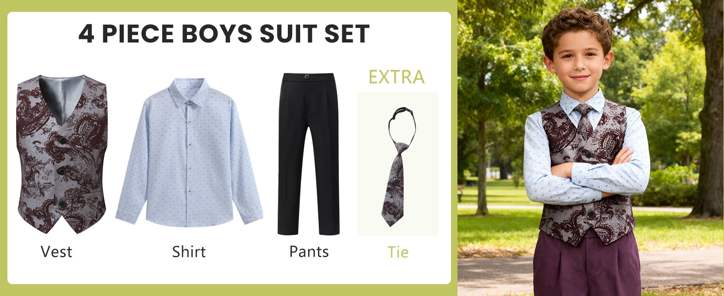 • طقم بدلة رسمية للأولاد مكون من 4 قطع: قميص، وسترة، وبنطلون، وربطة عنق