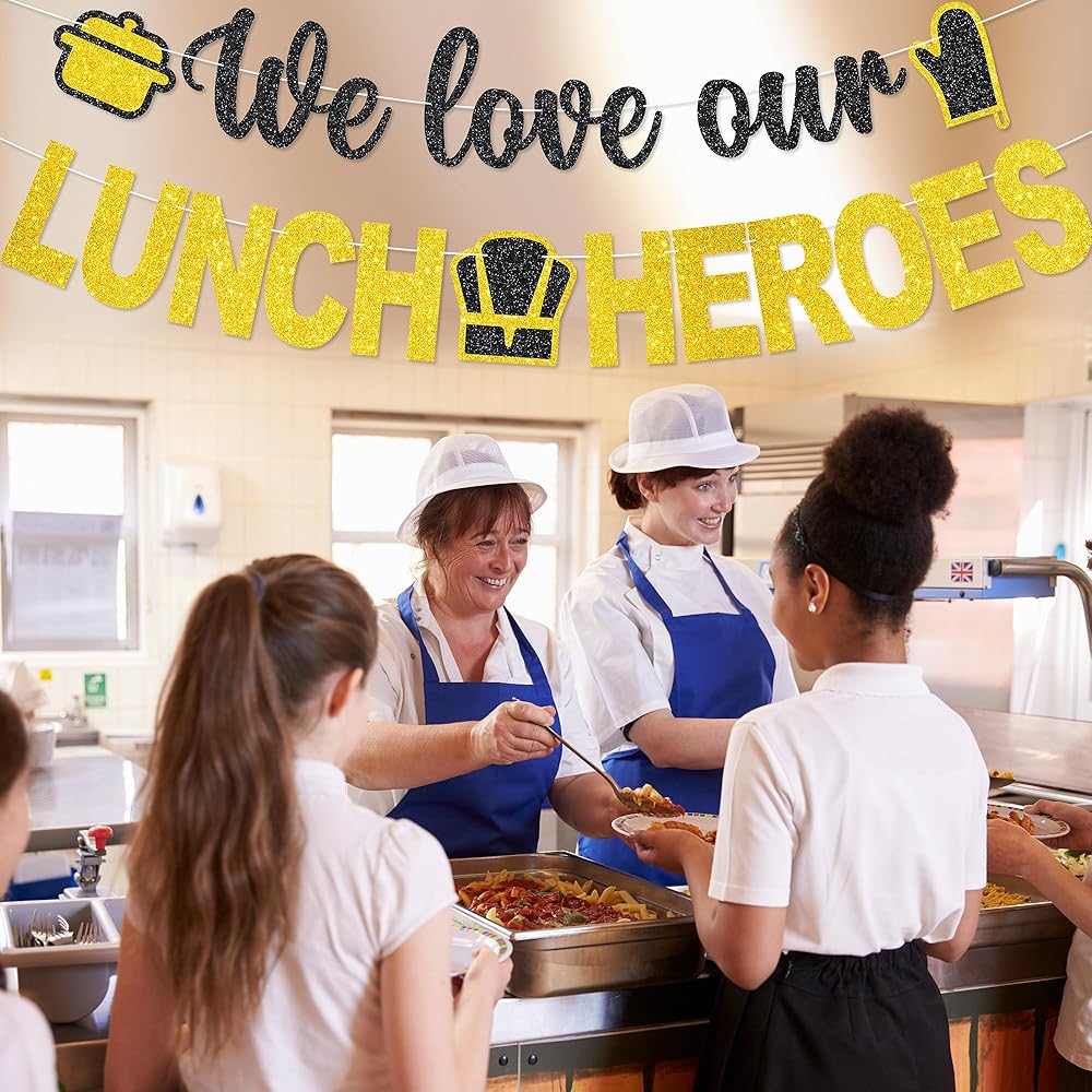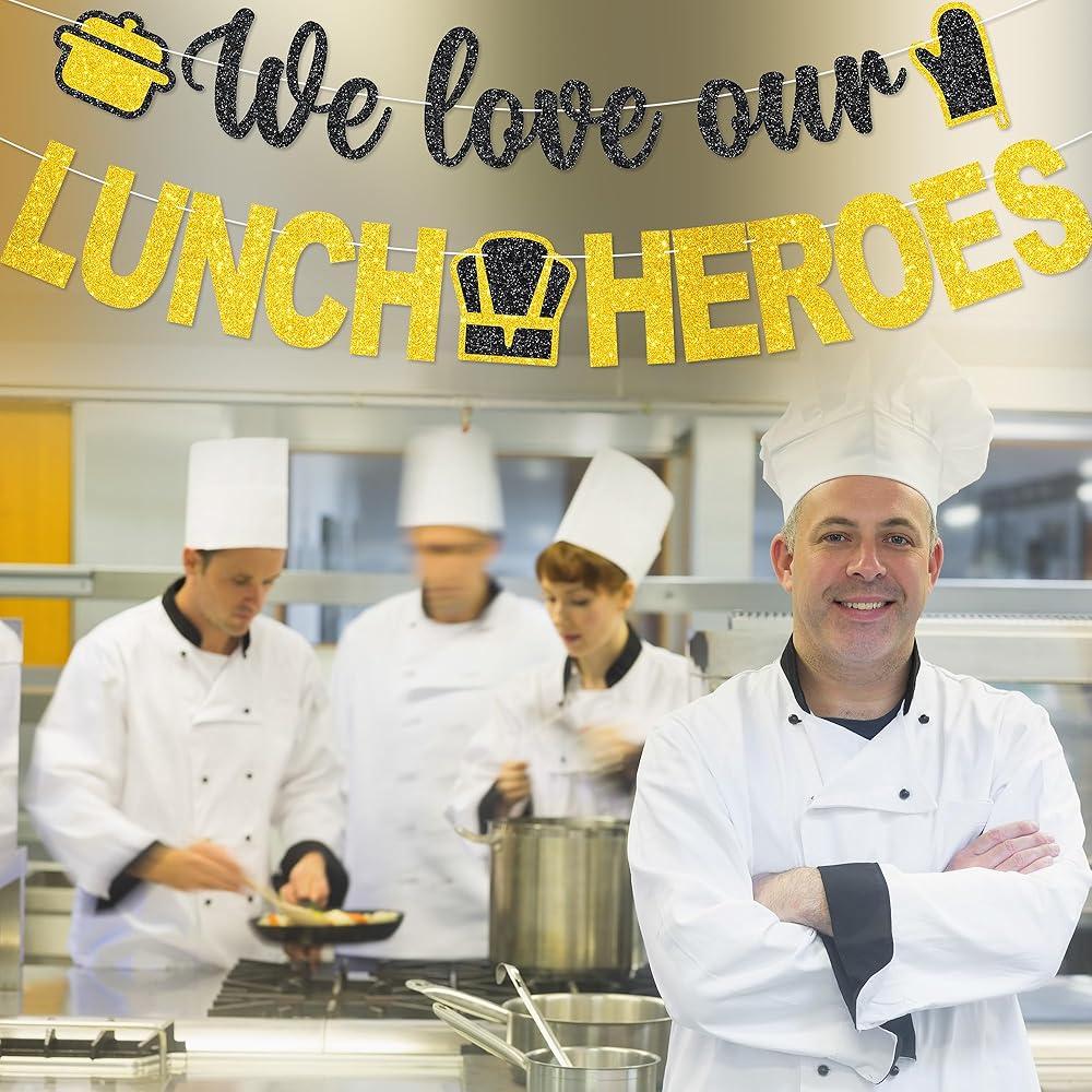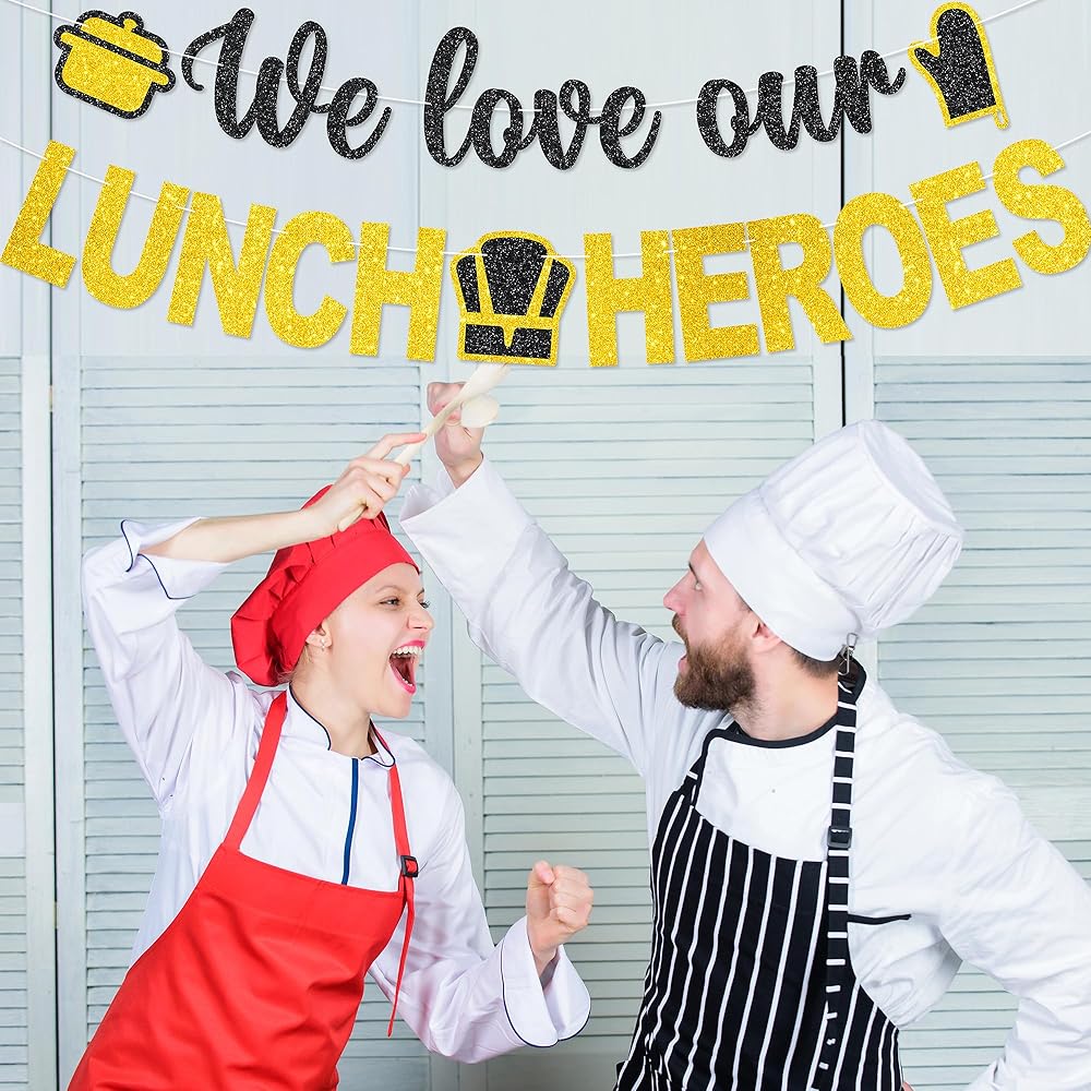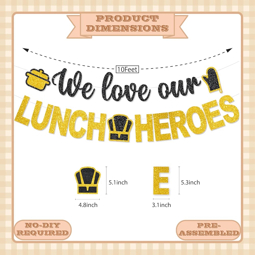 【PACKAGE INCLUDES】: Our party decorations include 1 piece of “WE LOVE OUR LUNCH HEROES” banner specifically designed for party. Create a vibrant and festive atmosphere with this visually appealing decorations.