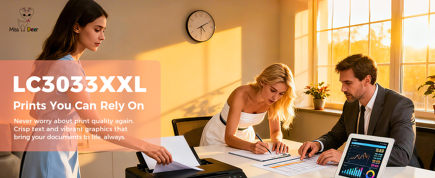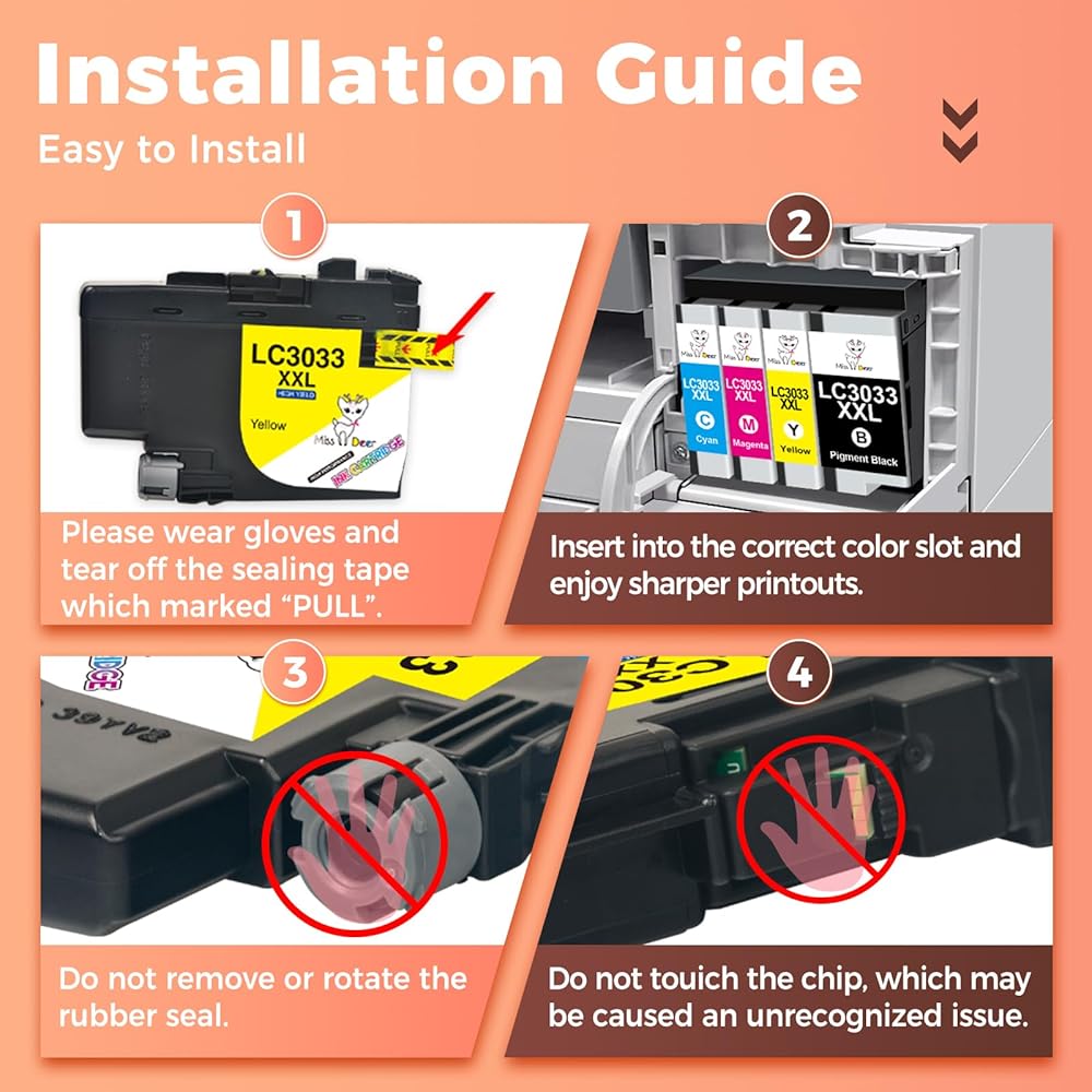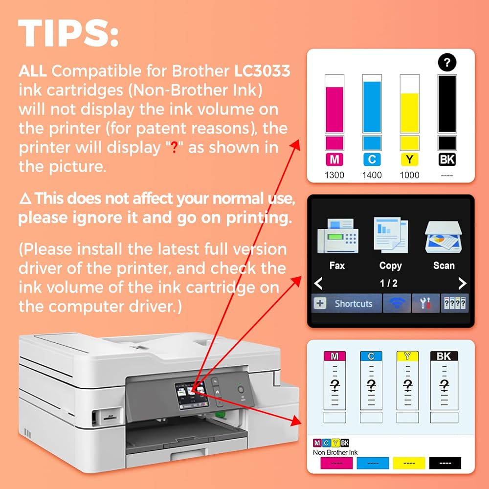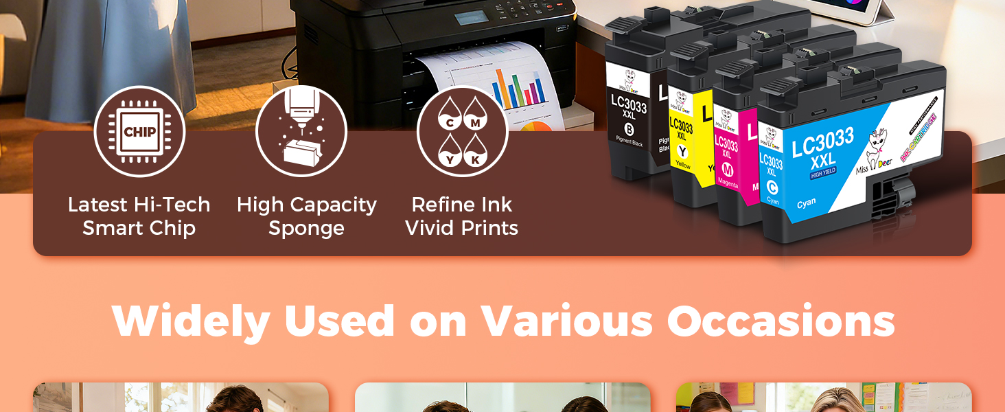 𝐏𝐫𝐞𝐜𝐢𝐬𝐞 𝐂𝐨𝐦𝐩𝐚𝐭𝐢𝐛𝐢𝐥𝐢𝐭𝐲 𝐖𝐢𝐭𝐡 تم تصميم خراطيش LC3033XXL باستخدام شريحة ذكية للتعرف التلقائي السلس، وهي متوافقة مع موديلات Brother المحددة بما في ذلك MFC-J995DW، وMFC-J805DW، وMFC-J815DW ومتغيراتها XL لسهولة التثبيت