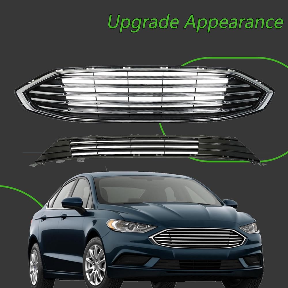 Front Bumper Upper Lower Grille Grill Replacement for 2017 2018 Fusion Black