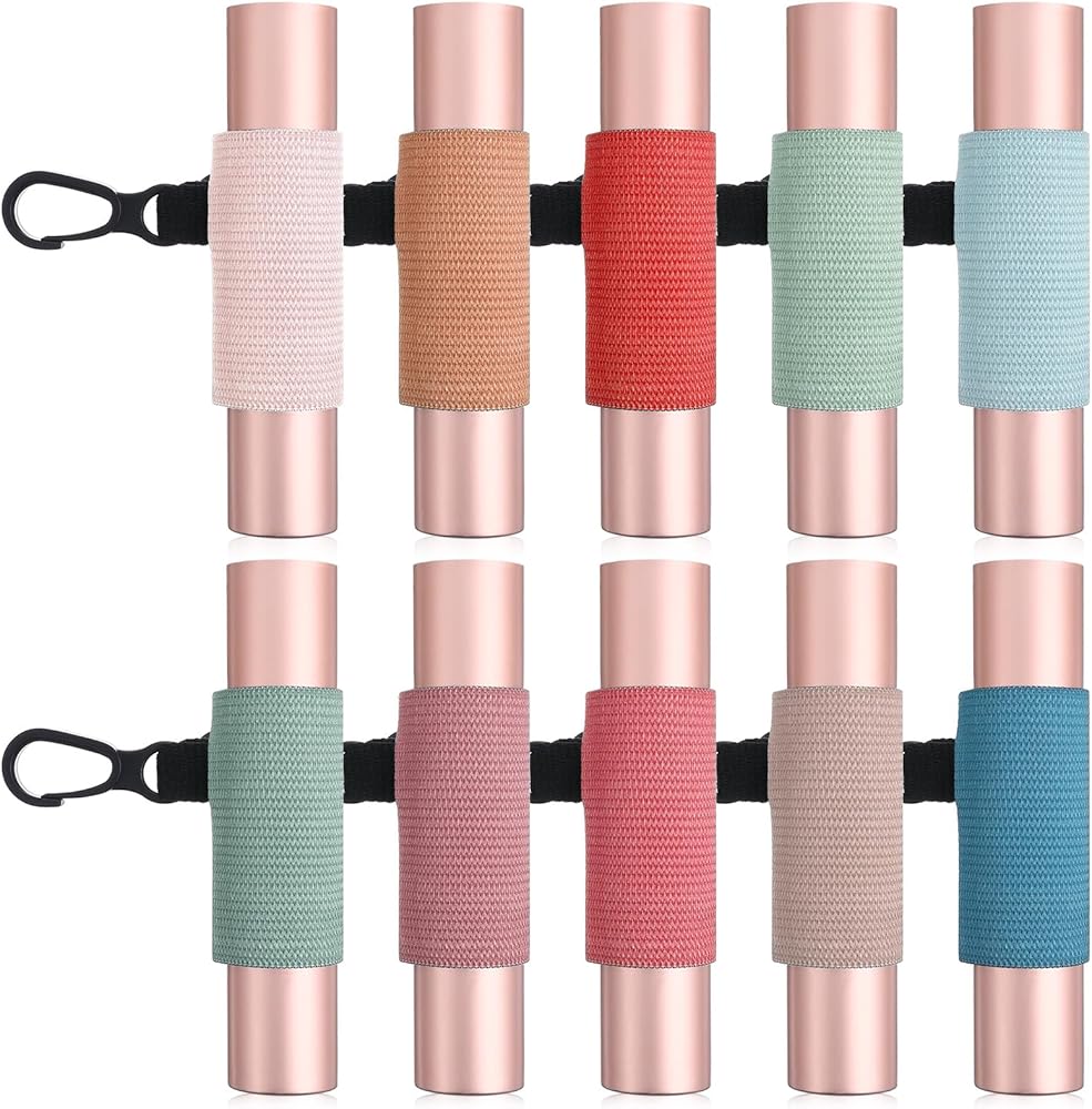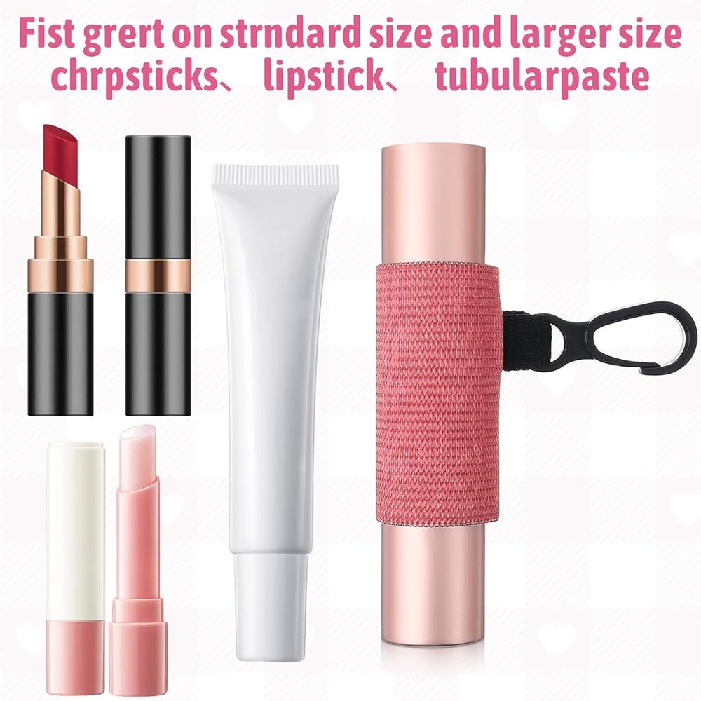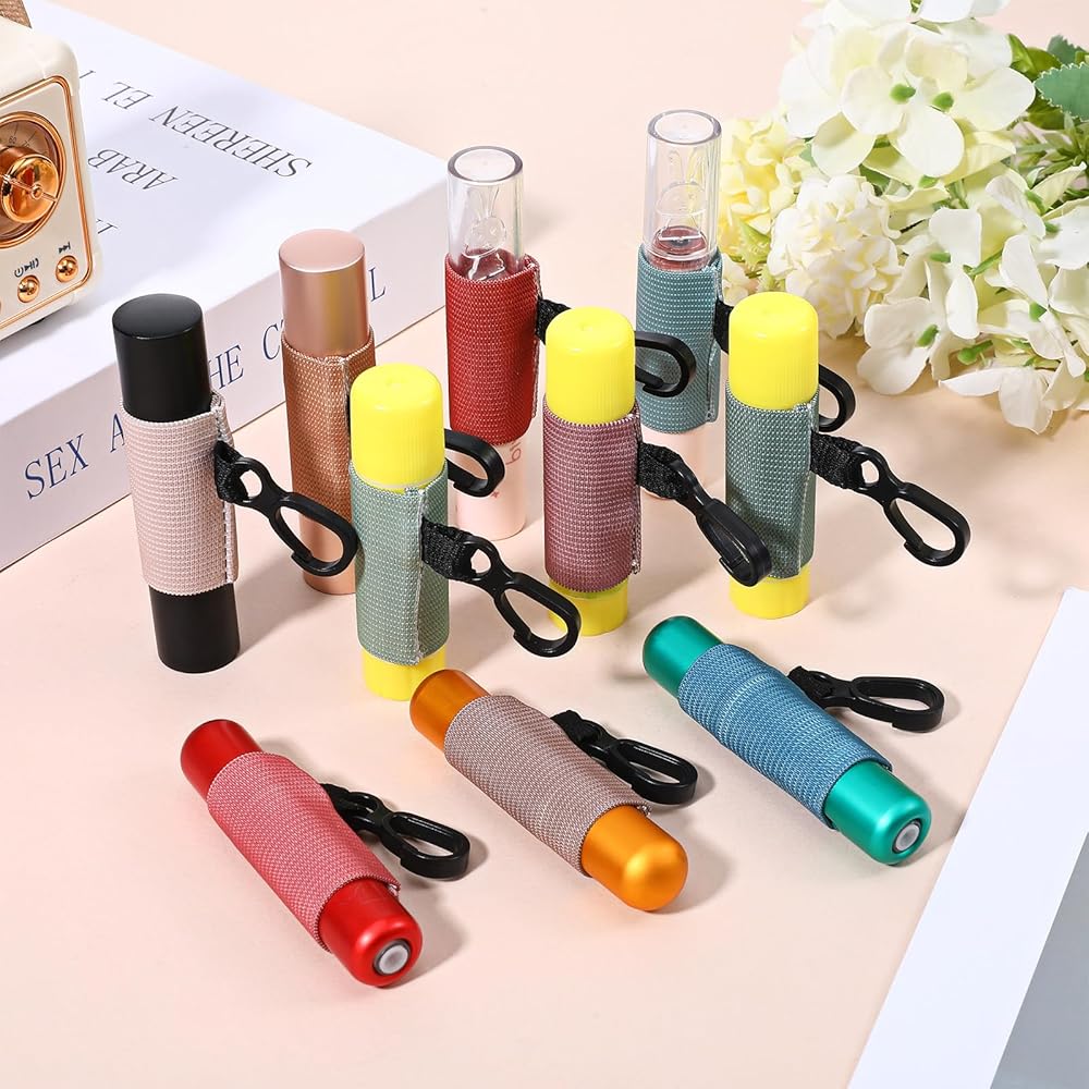 10 قطع من سلسلة مفاتيح حامل مرطب الشفاه، مشبك صغير على أكمام مرنة لأحمر الشفاه، حامل ملمع الشفاه المحمول، حامل سلسلة مفاتيح للنساء