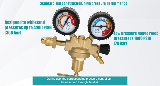 • أداء الضغط العالي: تتميز مجموعة اختبار ضغط النيتروجين لدينا بمنظم أحادي المرحلة قادر على تحقيق نطاق قياس الضغط العالي 4400 رطل لكل بوصة مربعة (300 بار) ونطاق قياس الضغط المنخفض 1000 رطل لكل بوصة مربعة (70 بار). فهو يوفر استقرارًا مستدامًا مع تمكين التحكم الدقيق في الضغط.