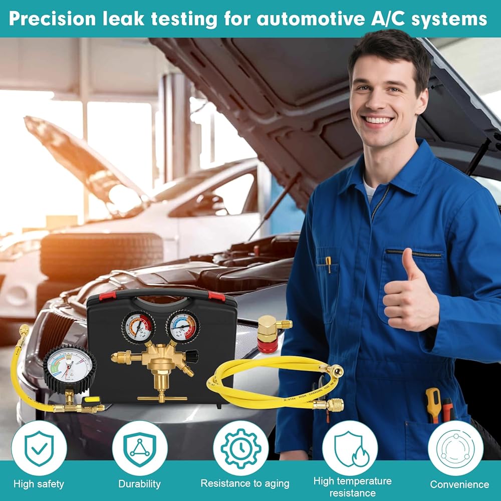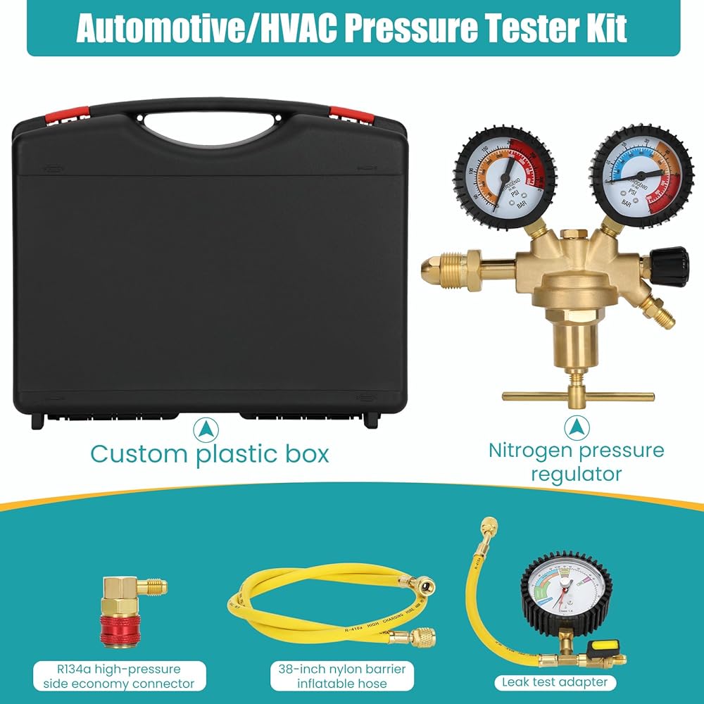 • حرفية عالية الجودة: تم تصنيع منظم النيتروجين الخاص بنا من مواد عالية الجودة، مما يوفر دقة احترافية ومتانة وسهولة الاستخدام. تم تصميم مجموعة اختبار HVAC 53010 لتلبية مواصفات نظام تكييف الهواء في السيارات، حيث تتيح الكشف الدقيق عن تسرب النيتروجين في أنظمة تكييف الهواء السكنية والتجارية والصناعية - وهو الخيار الأفضل للمحترفين.