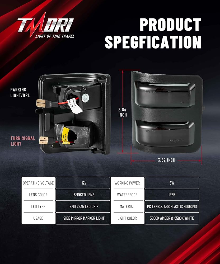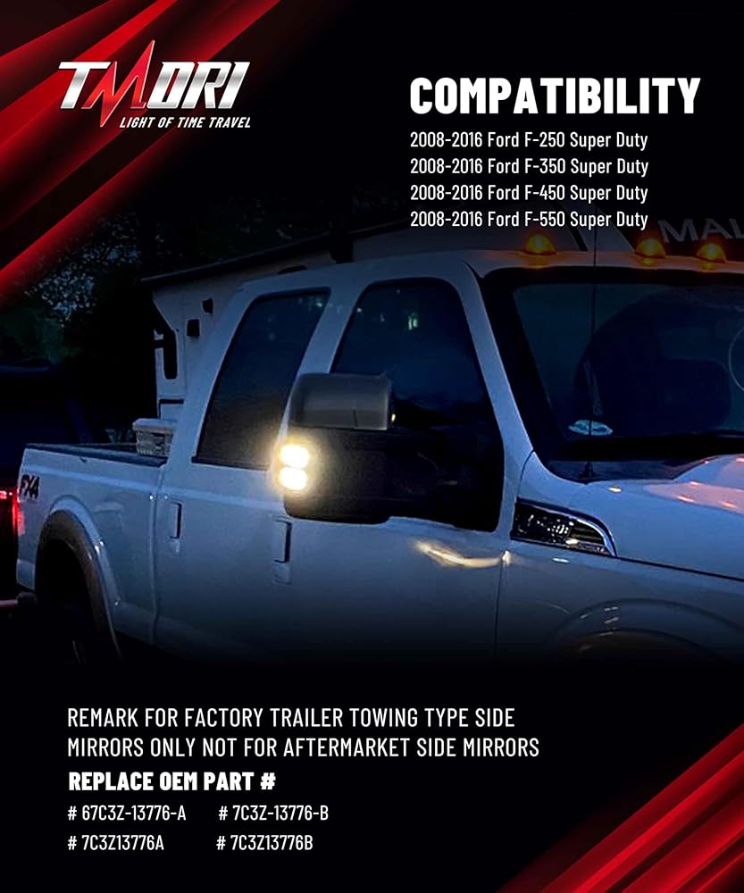 • 【تركيب التوصيل والتشغيل】أضواء مرآة جانبية فائقة التحمل TMORI F350/F450/F550 - قم بالترقية في دقائق دون أي متاعب! تم تصميمها كبديل مباشر لـ OEM، فهي لا تتطلب أي تعديلات على الأسلاك أو التشذيب أو مقاومات/مرحلات إضافية. ما عليك سوى توصيل أداة المصنع الخاصة بك للحصول على نتائج فورية - وهي مثالية لعشاق الأعمال اليدوية أو أي شخص يرغب في ترقية سريعة بدون أدوات
