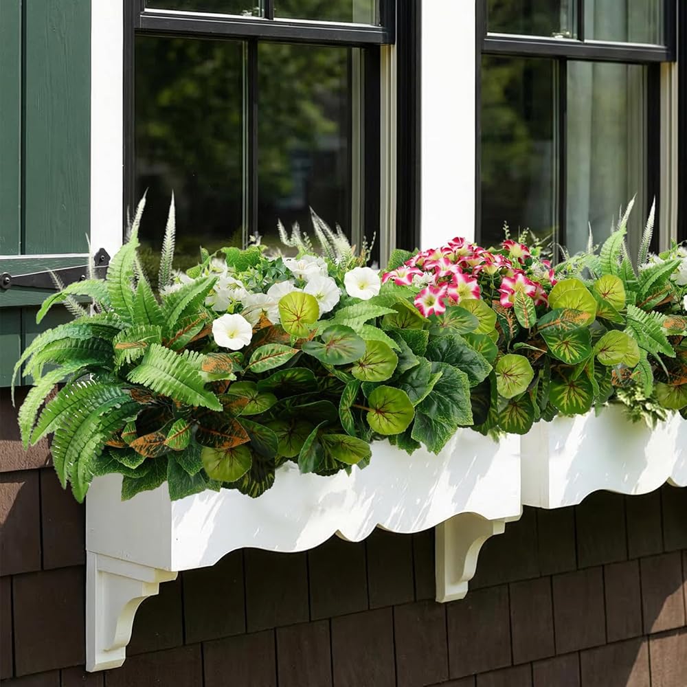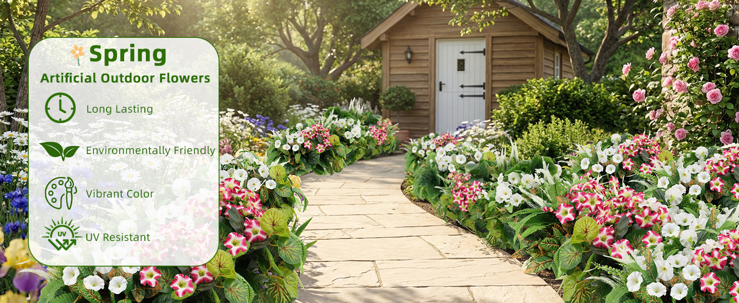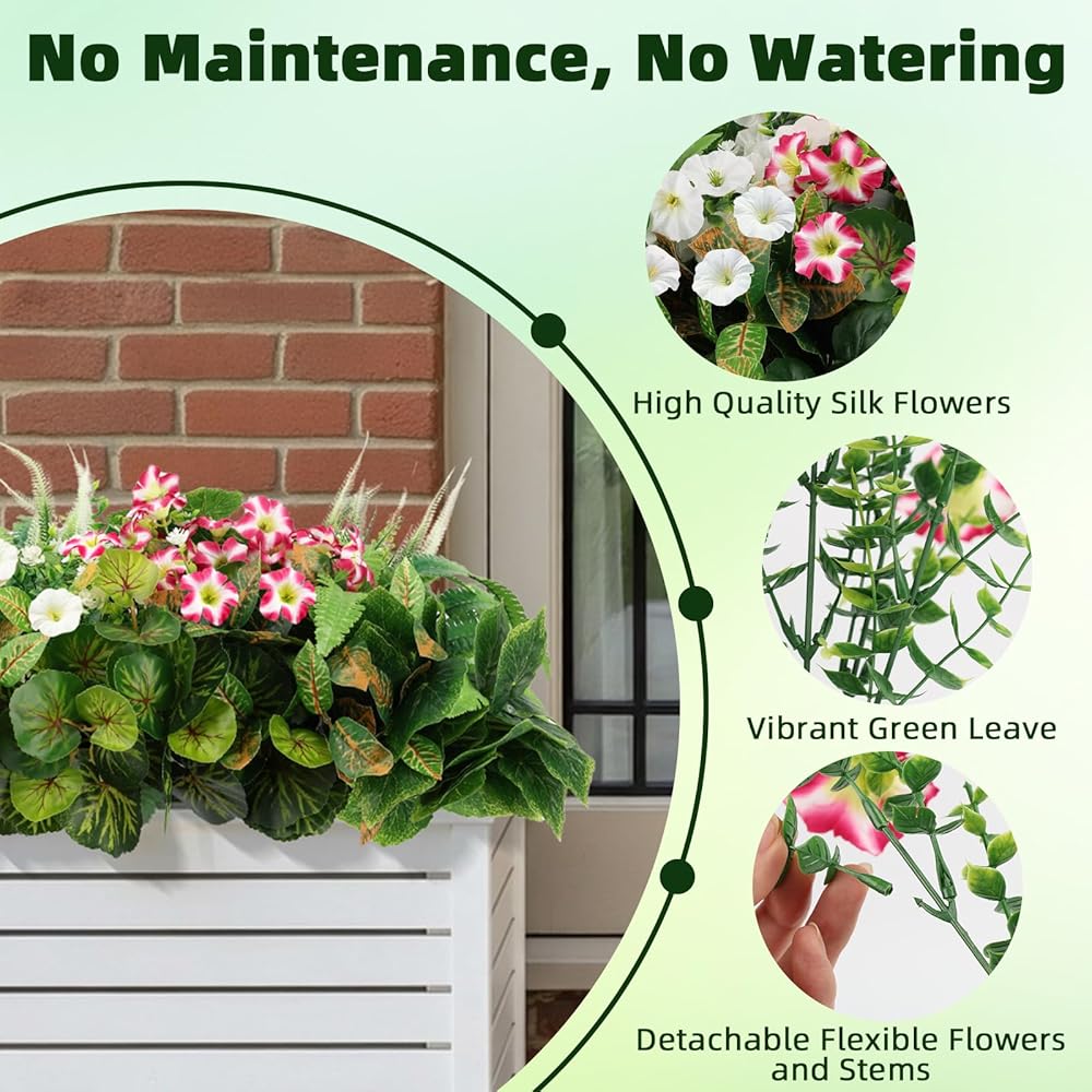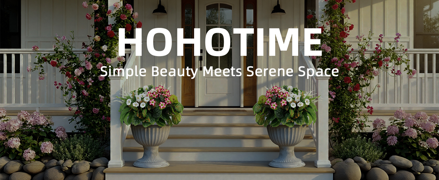 HOHOTIME نباتات صناعية في الهواء الطلق، خضرة صناعية وزهور واقعية مقاومة للأشعة فوق البنفسجية، بلاستيك بيجونيا صباح مجد الأوكالبتوس السرخس للديكورات الخارجية، فناء حديقة أمامية، ديكور ساحة الشرفة