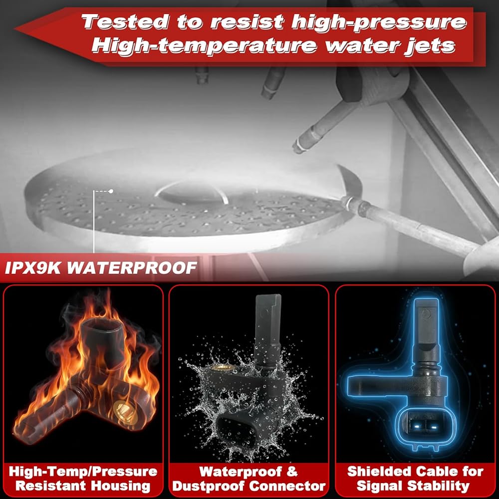 • 【حماية ممتازة ضد الماء - تم اختبار IPX9K】اجتاز مستشعر السرعة اختبارات نفث الماء ذات الضغط العالي ودرجة الحرارة العالية وفقًا لمعايير IPX9K. يمكن الاعتماد عليه في ظروف المطر أو الطين أو غسيل السيارات.