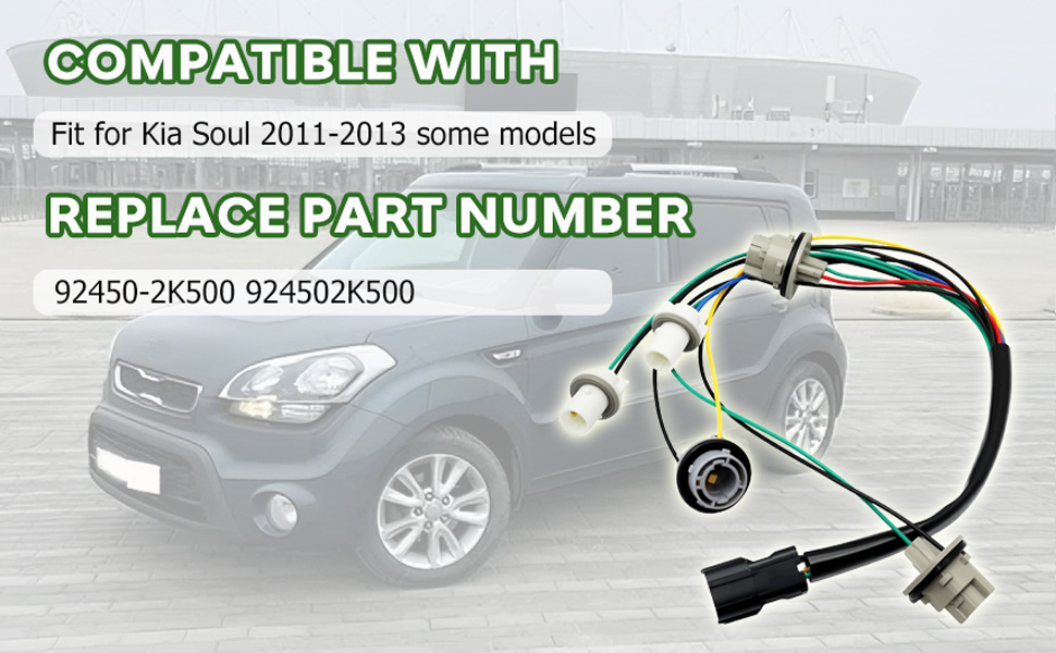 92450-2K500 حزام المصباح الخلفي LH أو RH متوافق مع Kia Soul 2011-2013 2.0L I4، غير LED، مقبس أسلاك المصباح الخلفي الخلفي