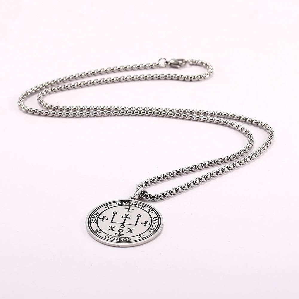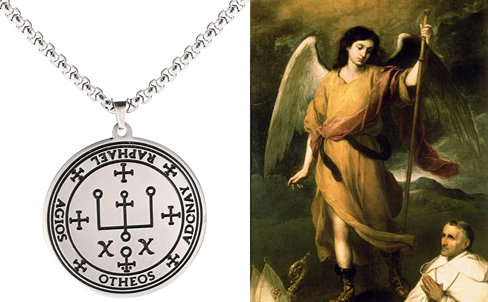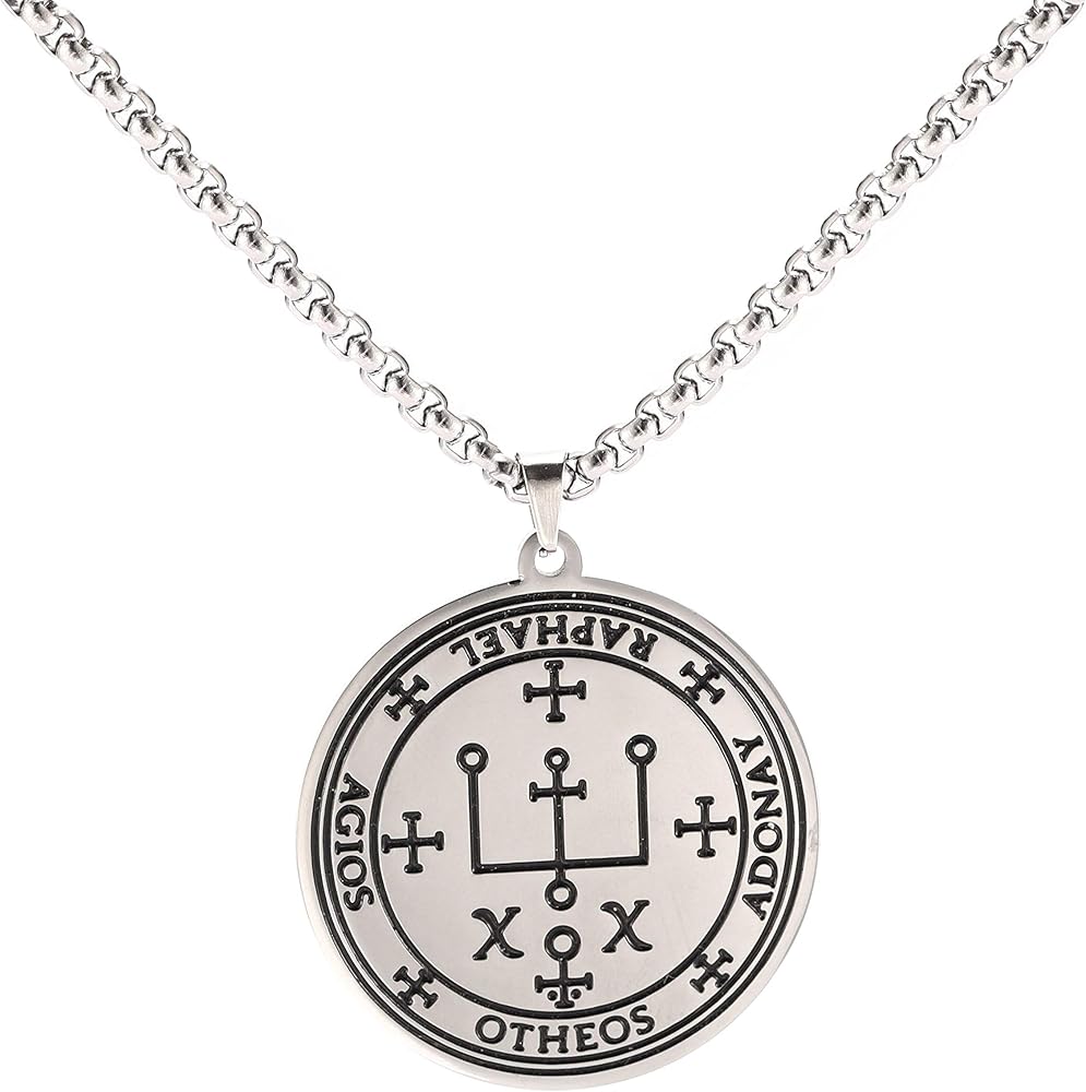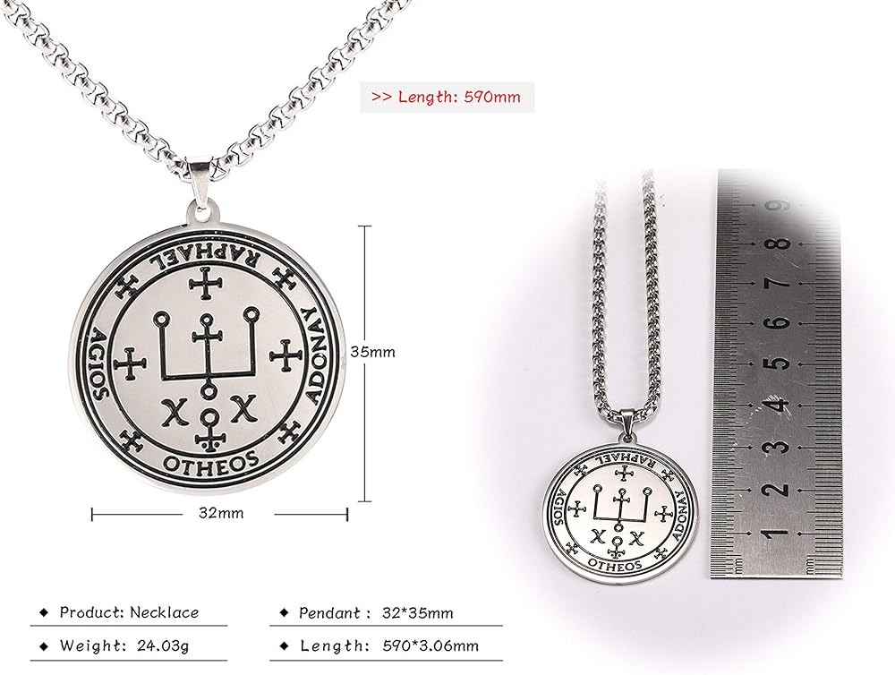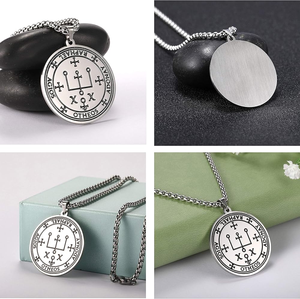 VASSAGO الفولاذ المقاوم للصدأ تعويذة من رئيس الملائكة رافائيل سيجيل قلادة الملاك السحر جولة سحر النقش تميمة سلسلة واسعة للرجال والنساء