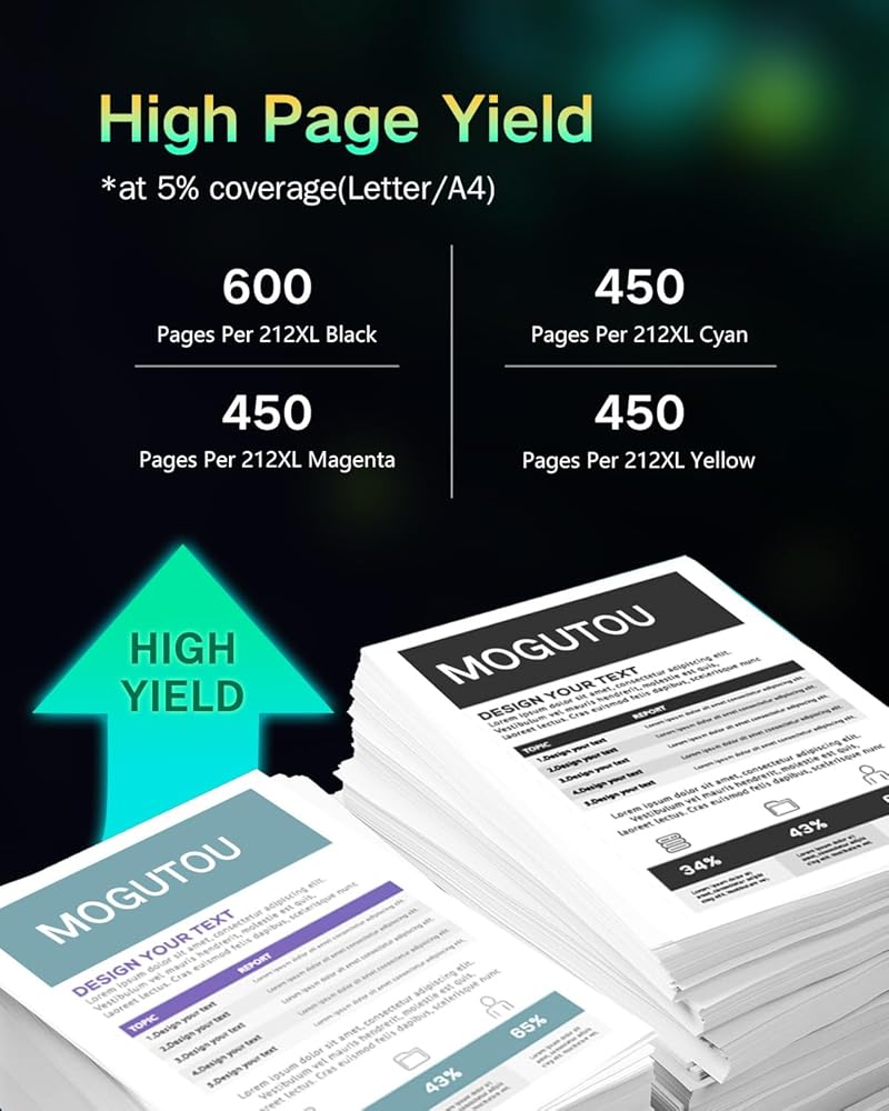 توفر خراطيش حبر MOGUTOU جودة طباعة ممتازة بألوان زاهية ومستوى عالٍ من الوضوح