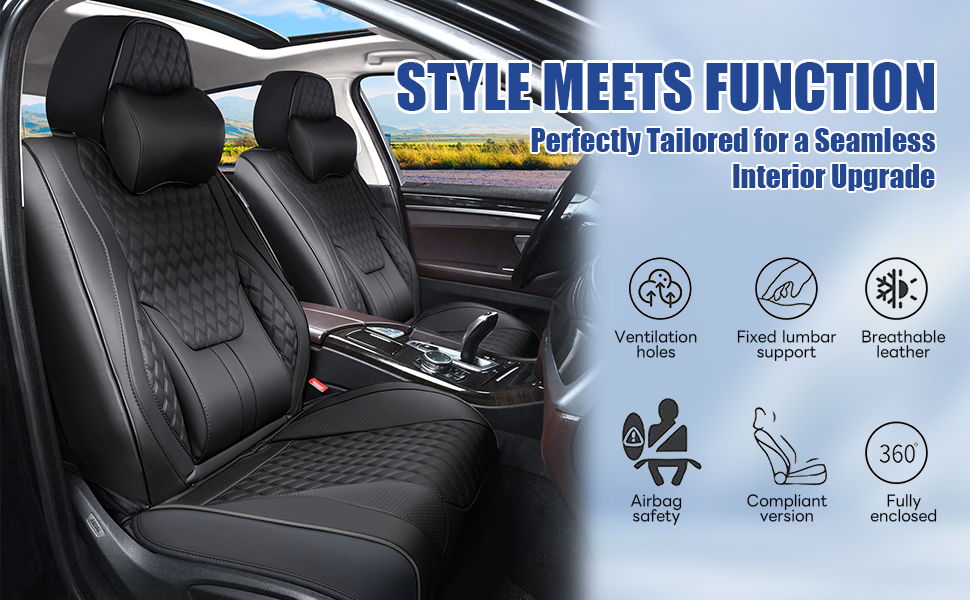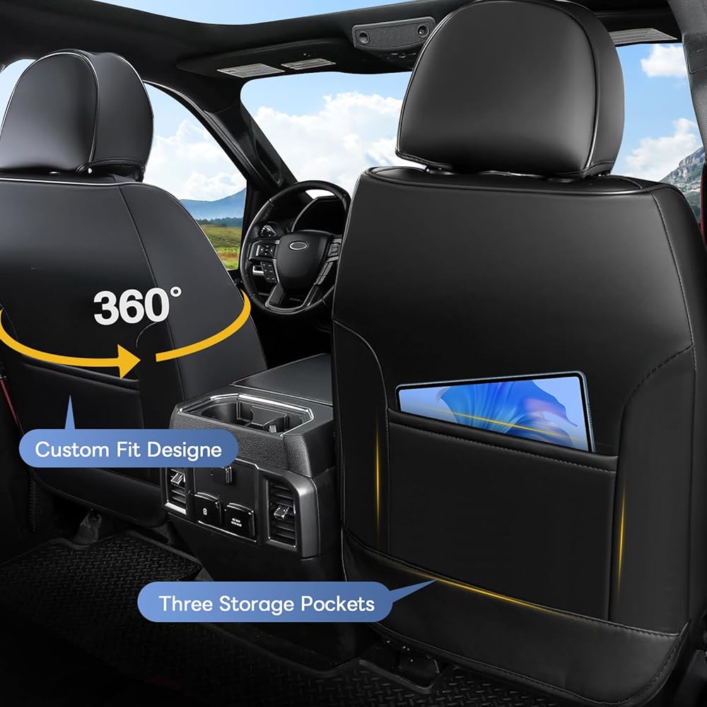 يحافظ على وظائف المقعد بالكامل - تم تصميمه للسماح بالوصول الكامل إلى الوسائد الهوائية وأحزمة الأمان ومساند الأذرع وتعديلات المقعد. تتيح أغطية مسند الرأس المنفصلة سهولة التعديل لتحقيق الراحة والأمان الأمثل.