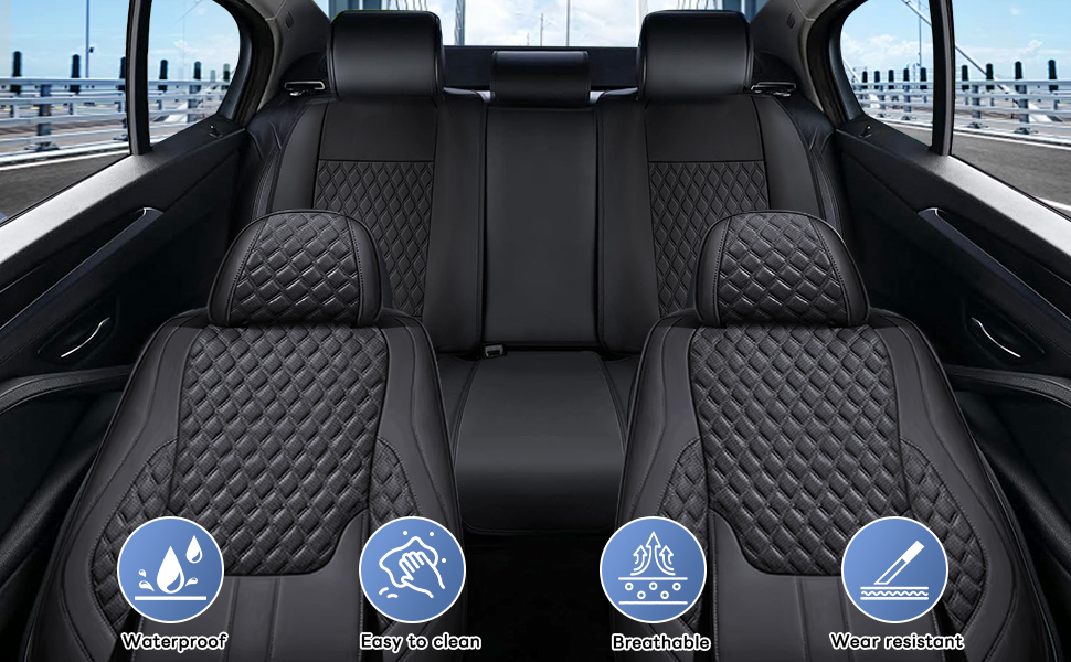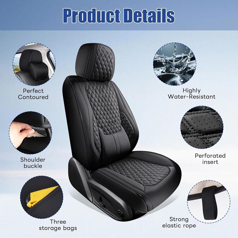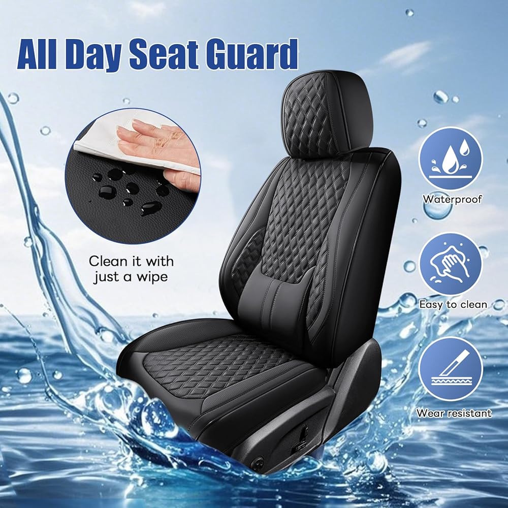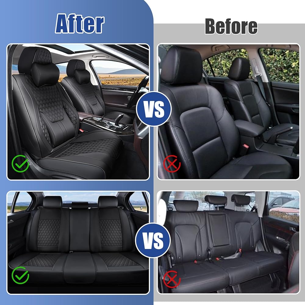 مجموعة كاملة مع أغطية مسند الرأس - تتضمن غطاءين للمقاعد الأمامية، و3 أغطية للمقاعد الخلفية، و5 أغطية منفصلة لمسند الرأس من أجل ترقية داخلية كاملة وموحدة. يوفر الحماية الكاملة ضد الأوساخ والانسكابات والبقع والتآكل اليومي مع تعزيز راحة القيادة.