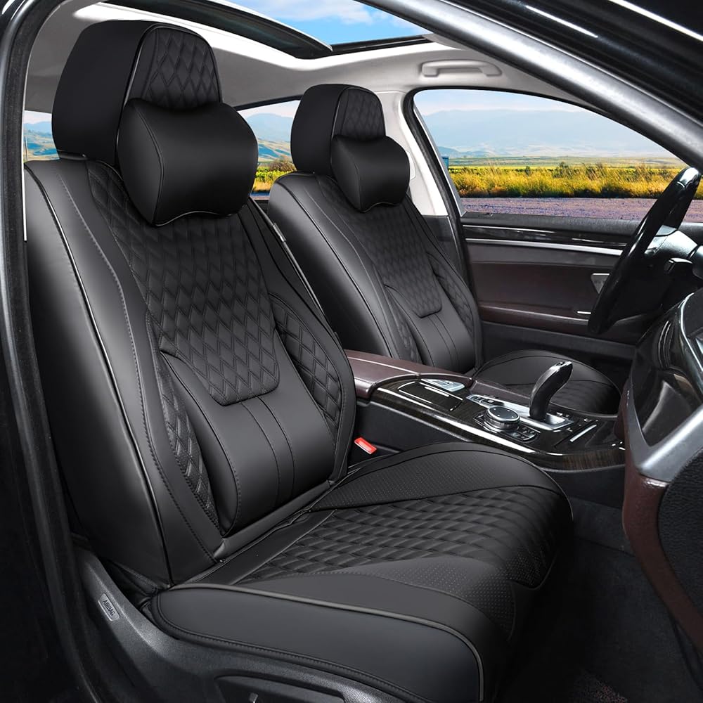 أغطية مقاعد السيارة مع وسادة للرقبة، أغطية أمامية للسيارات، غطاء مقعد السيارة الأمامي، واقي مقعد السيارة مقاوم للماء، وسادة مقعد السيارة الجلدية، أغطية داخلية عالمية لحماية مقاعد معظم السيارات