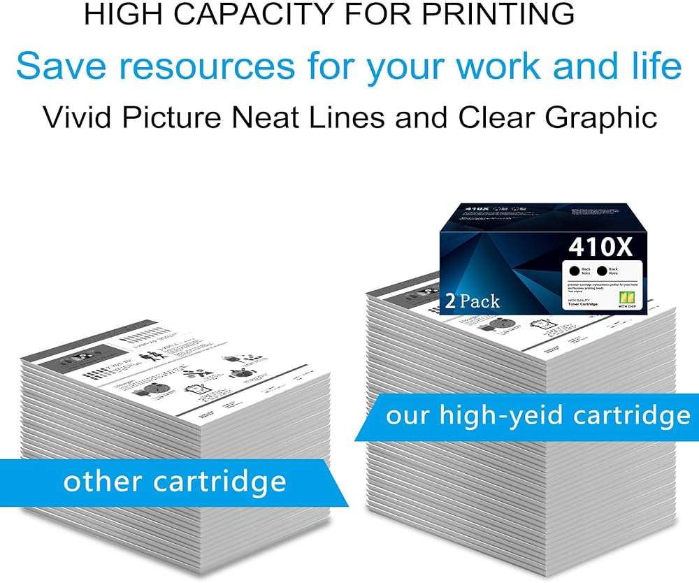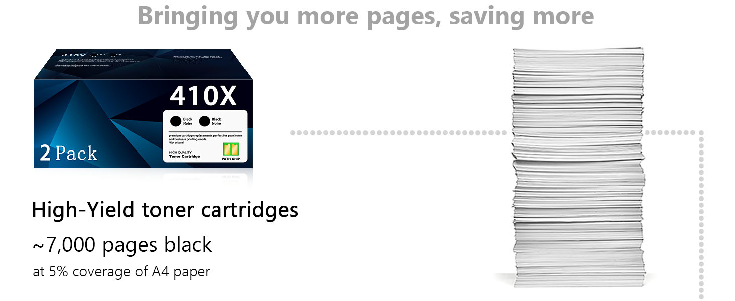مجموعة مكونة من عبوتين: تتضمن 2 خراطيش حبر سوداء عالية الإنتاجية 410x، مما يطيل عمر الاستخدام ويقلل من تكرار عمليات الاستبدال.