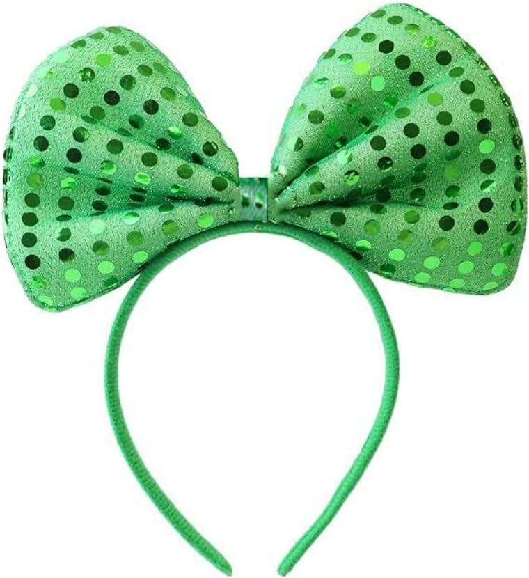 Reliable Accessories: This green bowtie headband is made of plastic and foam, solid and strong; It is about 17 cm/6.7 inches in width, 21 cm/8.3 inches in height, fits most women and girls. These accessories work well for St. Patrick's Day parties as supplies, decorations, party favor or giveaways