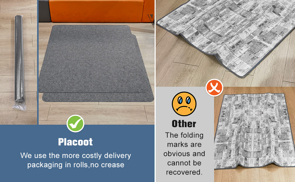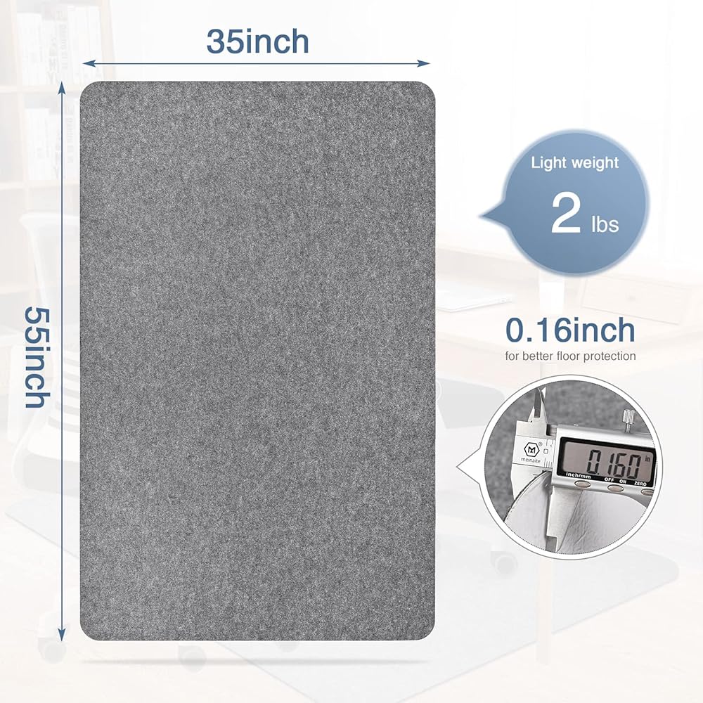 حماية فعالة للأرضيات الصلبة، تحمي هذه السجادة الأرضيات الصلبة (الخشب الصلب، البلاط، الصفائح، المشمع) من التآكل والتمزق، وتقلل من ضوضاء الكرسي المتدحرج، مما يضمن بيئة سلمية حتى في الليل.