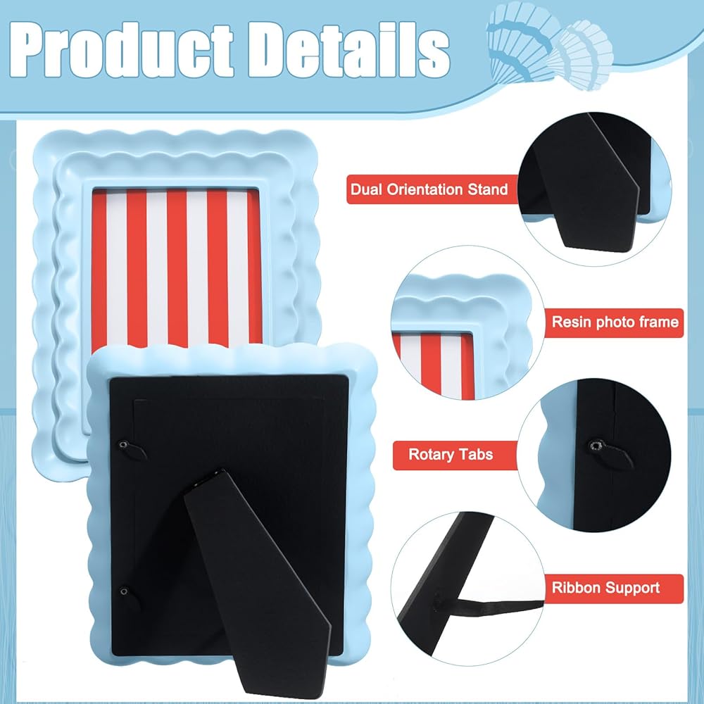 Crafted from steady resin, this picture frame is designed to withstand the test of time while maintaining its elegant appearance. The blue color adds a serene touch, complementing various decor styles. Whether in a bedroom, living room, or office, it's the reliable choice for showcasing treasured photos.
