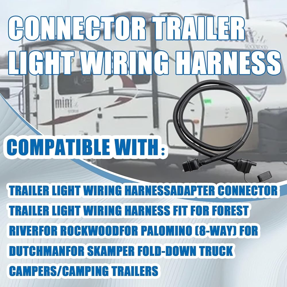 • [Compatible with] Trailer Light Wiring HarnessAdapter Connector Trailer Light Wiring Harness Fit for Forest Riverfor Rockwoodfor Palomino (8-Way) for Dutchmanfor Skamper Fold-Down Truck Campers/Camping Trailers