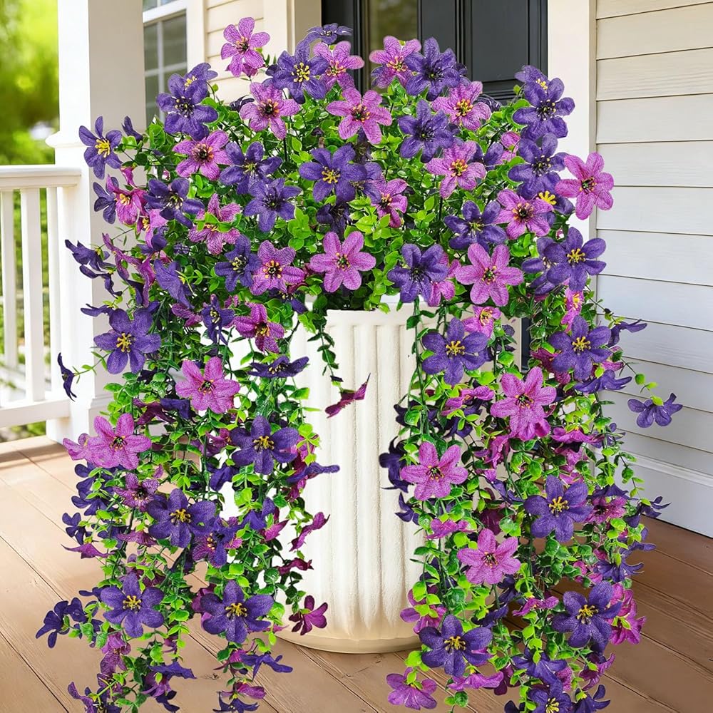 زخرفة متعددة الاستخدامات: تحتوي كل عبوة على قطعتين من الزهور الحريرية المعلقة المزيفة، و16 فرعًا في كل حزمة لسهولة التركيب. هذه الزهور البلاستيكية في الهواء الطلق مثالية لتزيين منزلك، والشرفات، ومزارعي الحديقة، والسطح، والفناء، والشرفة، والفناء، وعتبة النافذة، والممر، والمدخل، وسلة التعليق، سواء في الداخل أو الخارج، أو ديكور الزفاف والحفلات.