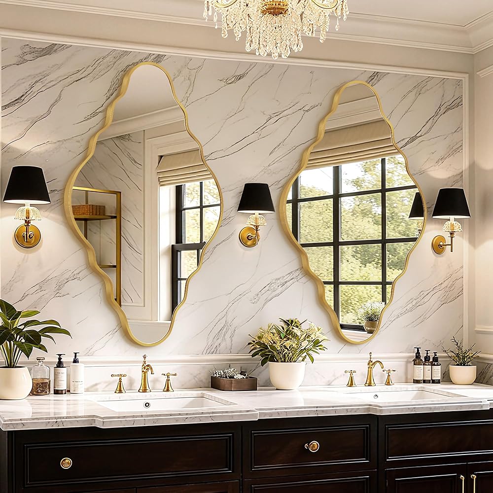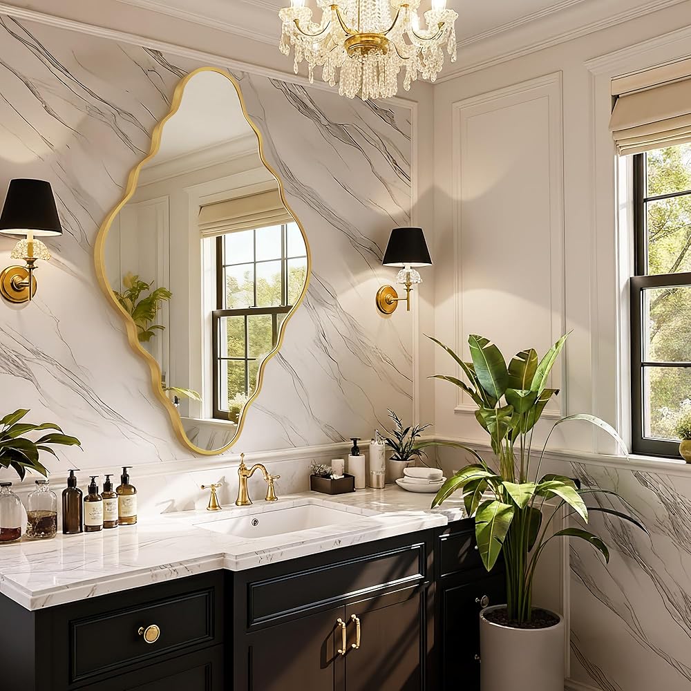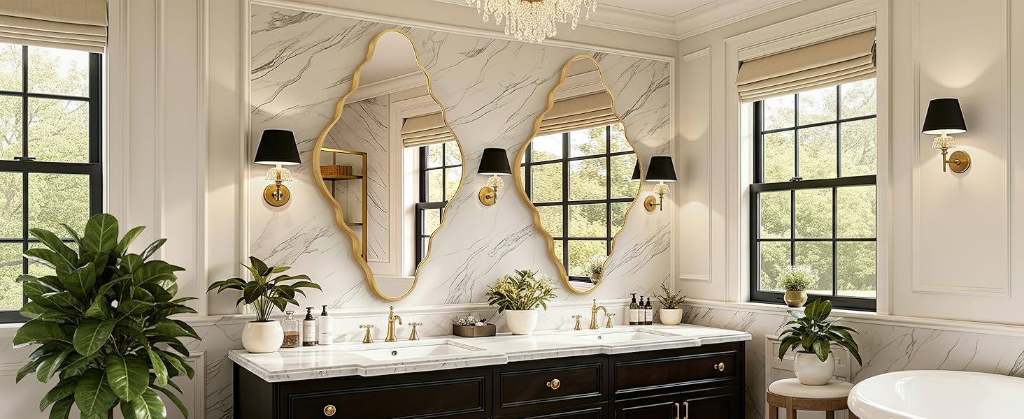 سهلة التركيب: مرآة الحائط غير المنتظمة مجهزة بخطافات معززة وجميع مكونات التثبيت الضرورية. عملية تركيب المرآة سريعة وبسيطة، مما يسمح لك بالاستمتاع بمرآة الحمام الرائعة بسهولة أكبر.