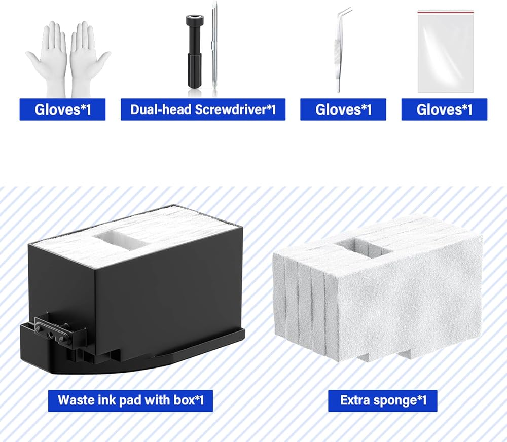 • What's In The Box: Waste Ink Pad (With sponge) x 1, sponge x 1, tweezers x1, disposable gloves x 1, double-headed screwdriver x 1, sealed bag x 1.