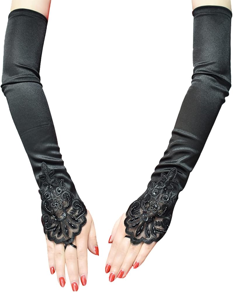 قفازات دانتيل طويلة - قفازاتنا الطويلة المصنوعة يدويًا من الساتان تتناسب تمامًا مع أي فستان للمناسبات الخاصة مثل حفلات الزفاف والعروض والاحتفالات والحفلات التنكرية والأوبرا والكرنفالات والهالوين وحفلات الخمسينيات وحفلات الشاي والعروض المسرحية.